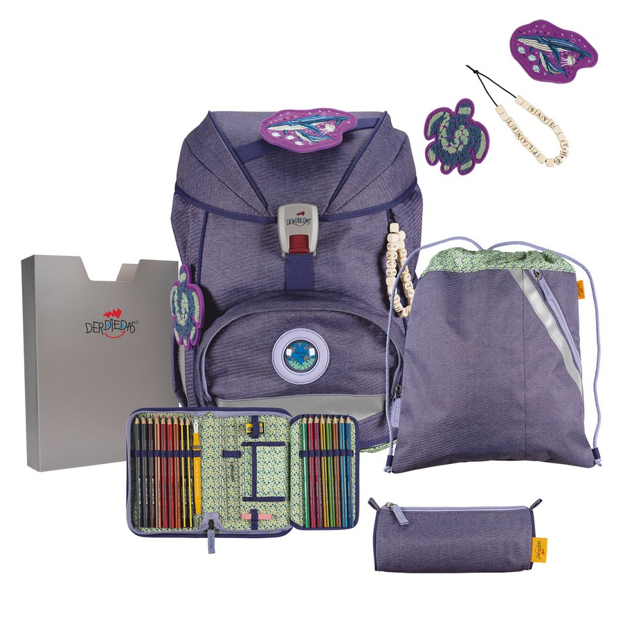 В комплекте:РюкзакМешок для обувиПенал с наполнениемМягкий пеналАксессуары: 2 сменных значка и 1 подвескаПапка-бокс