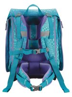 Ранец с наполнением, выполненном в едином стиле. Помимо ранца в комплект также входит сумка для занятий спортом, папка А4 для учебников и тетрадей, пенал-тубус и пенал с наполнением