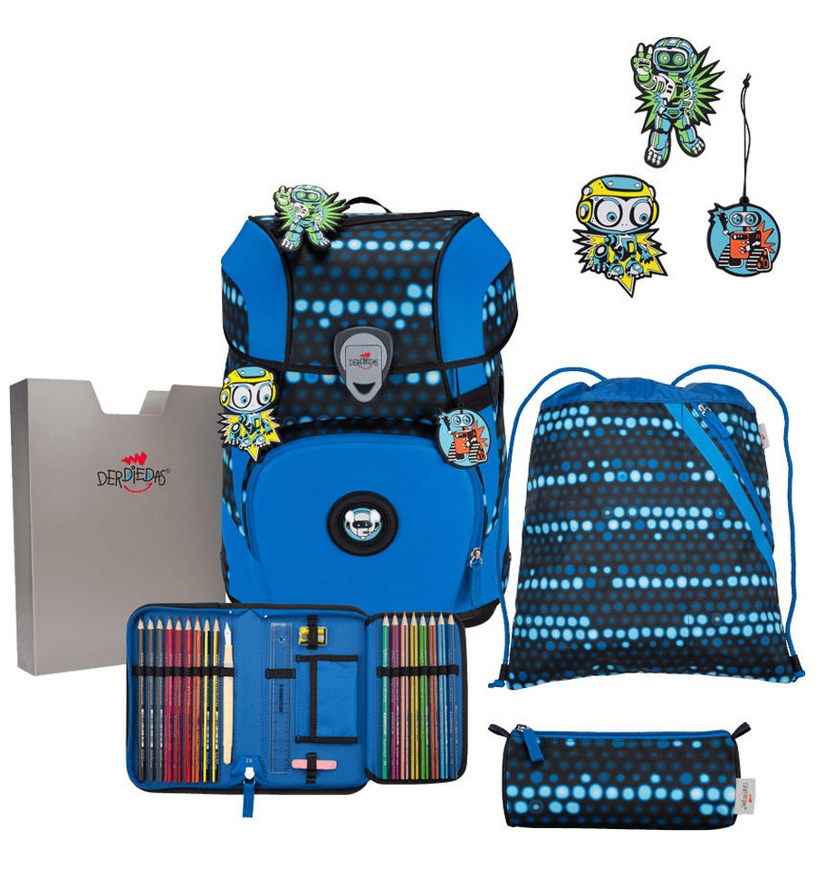 Школьный ранец DerDieDas ErgoFlex Tiny Superflash Buttons "Синий робот" купить в интернет - магазине детских товаров Babysecret с бесплатной доставкой по Москве и быстрой по России, цена, отзывы, фото, обзоры