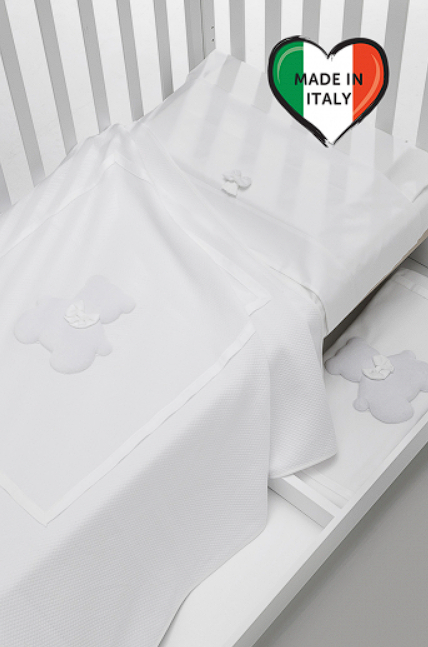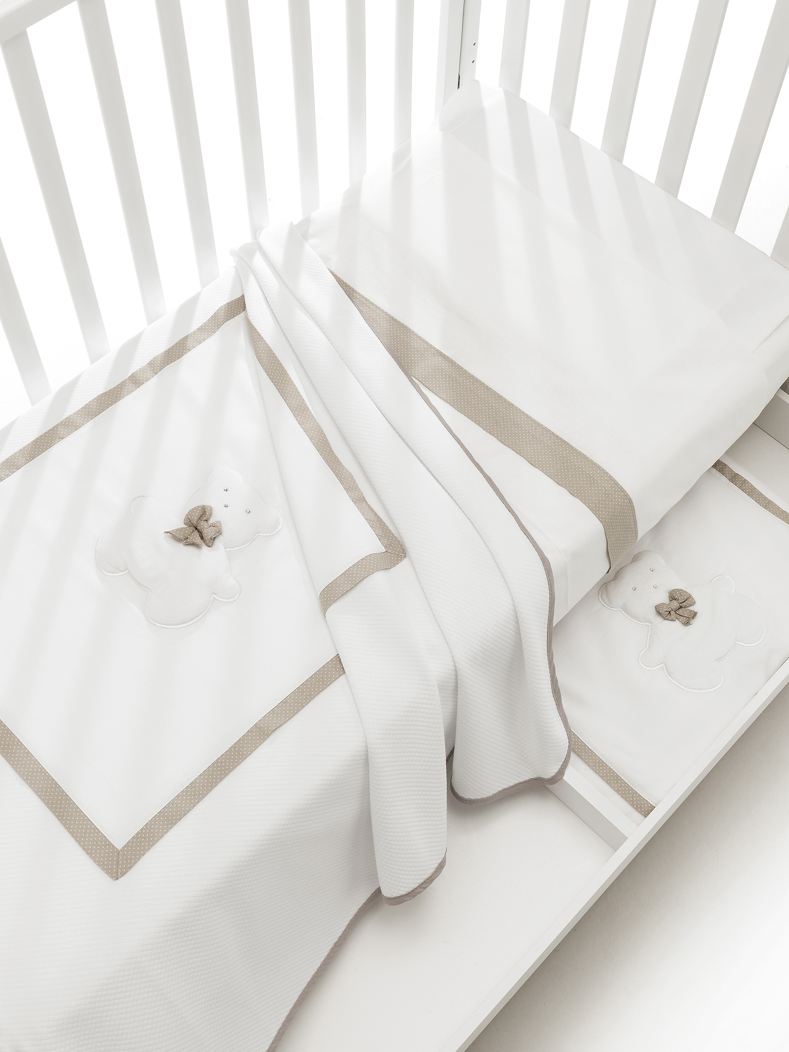 Приятные особенности постельного бельяErbesi: необыкновенно мягкое, нежное и комфортное сменное постельное белье для Вашего малютки. Комплект разработан для кроваток, габариты спального места в которых составляют 125х65 см, идеально гармонирует и сочетается с мебелью серии Dudu. Универсальная расцветка подойдет как для мальчиков, так и для девочек. В набор сходит наволочка на подушку, простыня и тонкое одеяло-покрывало.