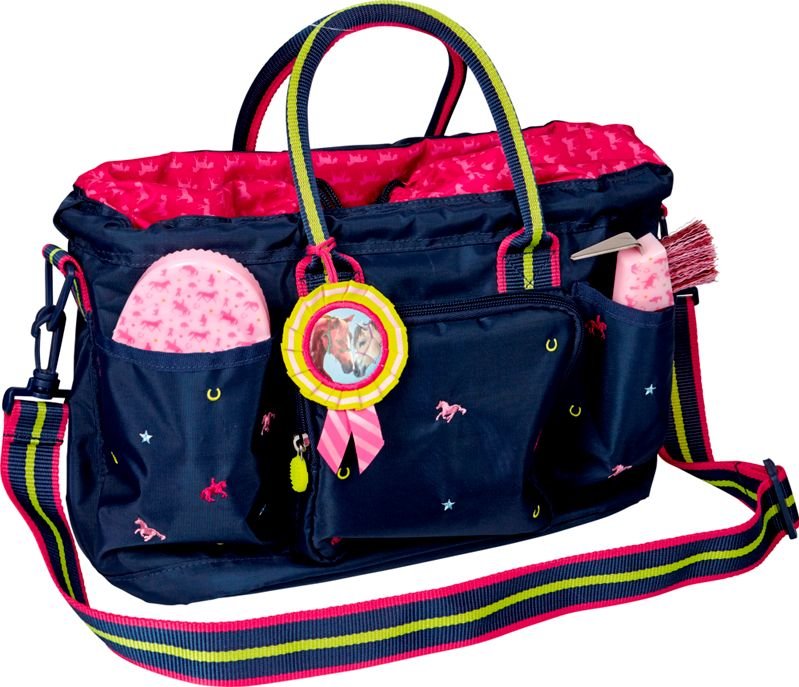 Приятные особенности :Удобная и вместительная спортивная сумка из коллекции с лошадьми будет незаменима при занятиях спортом и путешествиях. Сумка выполнена в сине-розовых цветах, имеет пять внешних карманов и съемным, регулируемым наплечным ремнем.