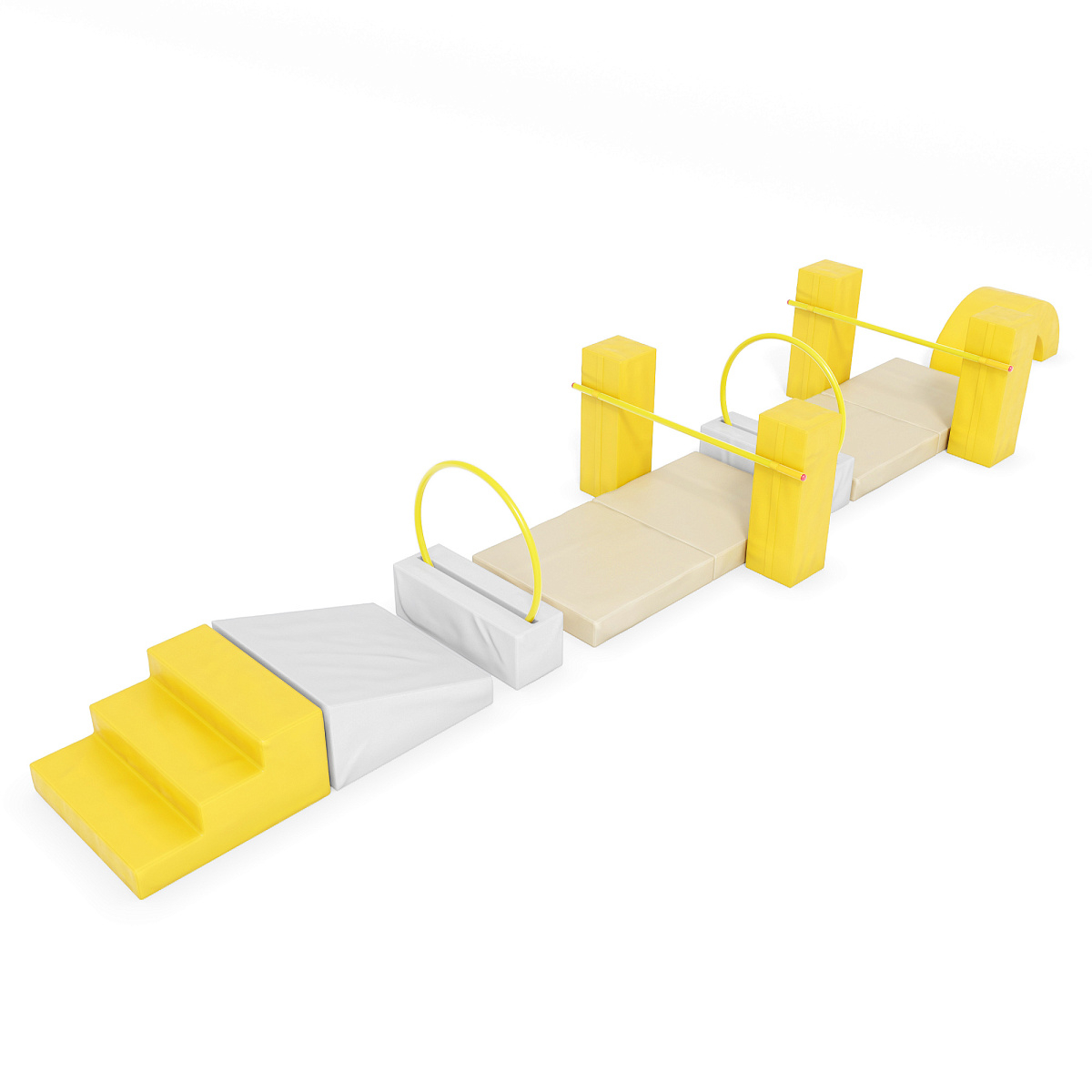 Приятные особенности:Спортивный модуль «Крокодил» - полоса препятствий из семи модулей и четырех матов. Позволяет разнообразить физическую нагрузку в спортивной и игровой форме. Хорошо выдерживает активную нагрузку, быстро восстанавливает свою первоначальную форму и не требует сложного гигиенического ухода. Подходит для детских садов и игровой комнаты дома или на даче. В комплекте: ступени, трапеция, мат, обруч, прямоугольник, арка.