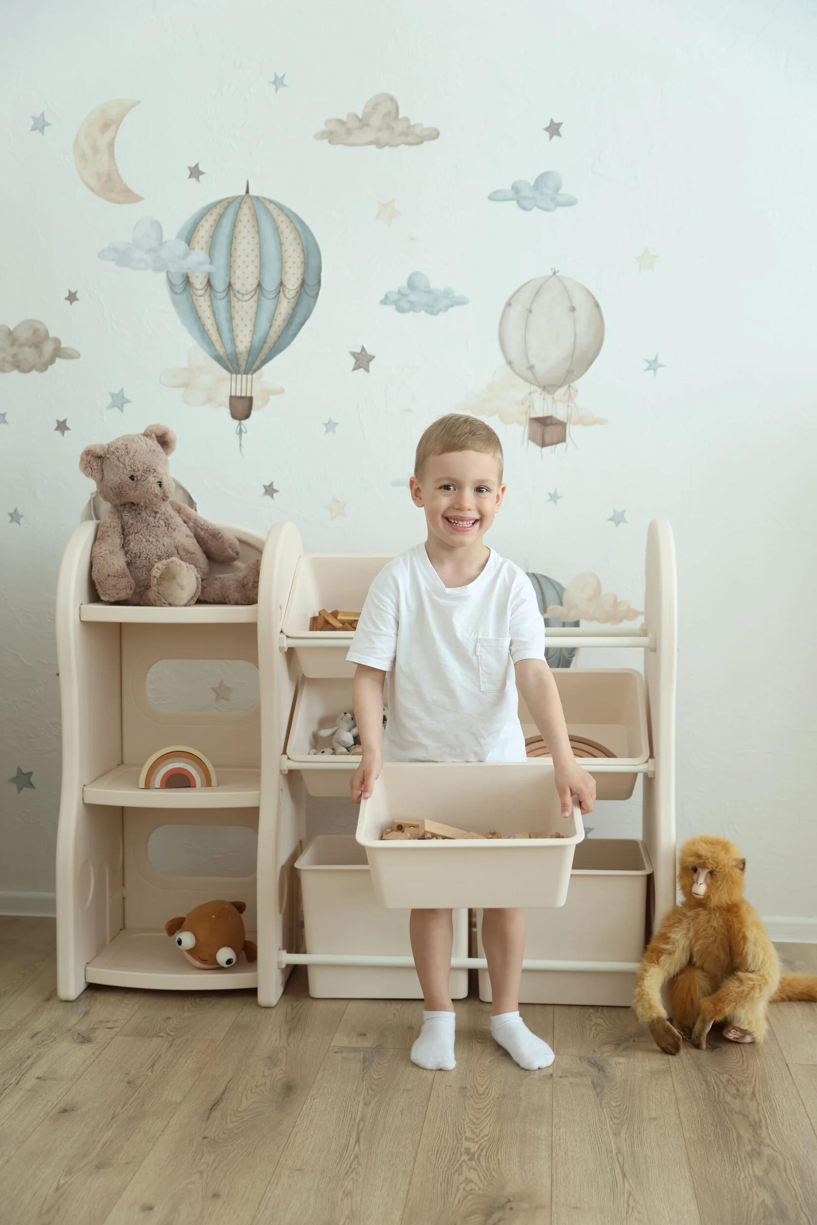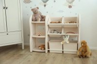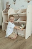 Приятные особенности: Удобный стеллаж поможет хранить детские вещи красиво и наводить порядок в квартире за считаные минуты. Надоело наступать на детали конструктора? Постоянно находите игрушки там, где им не место? У нас есть решение – современный вместительный шкаф-стеллаж. Плавные линии и пастельные тона позволяют шкафчику ненавязчиво дополнить любой интерьер. В глубокие закрытые ящики удобно прятать кубики и прочую мелочевку, а на открытых полках расставлять книги и любимые игрушки. Высота стеллажа и размер отсеков разработаны с учетом детской физиологии: ребенку удобно доставать и складывать все свои сокровища самостоятельно. В начале малыш сам будет выбирать, с чем играть, а в конце с удовольствием принимать участие в уборке. Стеллаж надежен и устойчив. При перемещении не повреждает напольные покрытия и не требует фиксации к стене. Конструкция максимально безопасная, без острых углов и легко отламывающихся деталей, поэтому возможность получить травмы сведена к минимуму. Мебель выполнена из безвредных материалов.