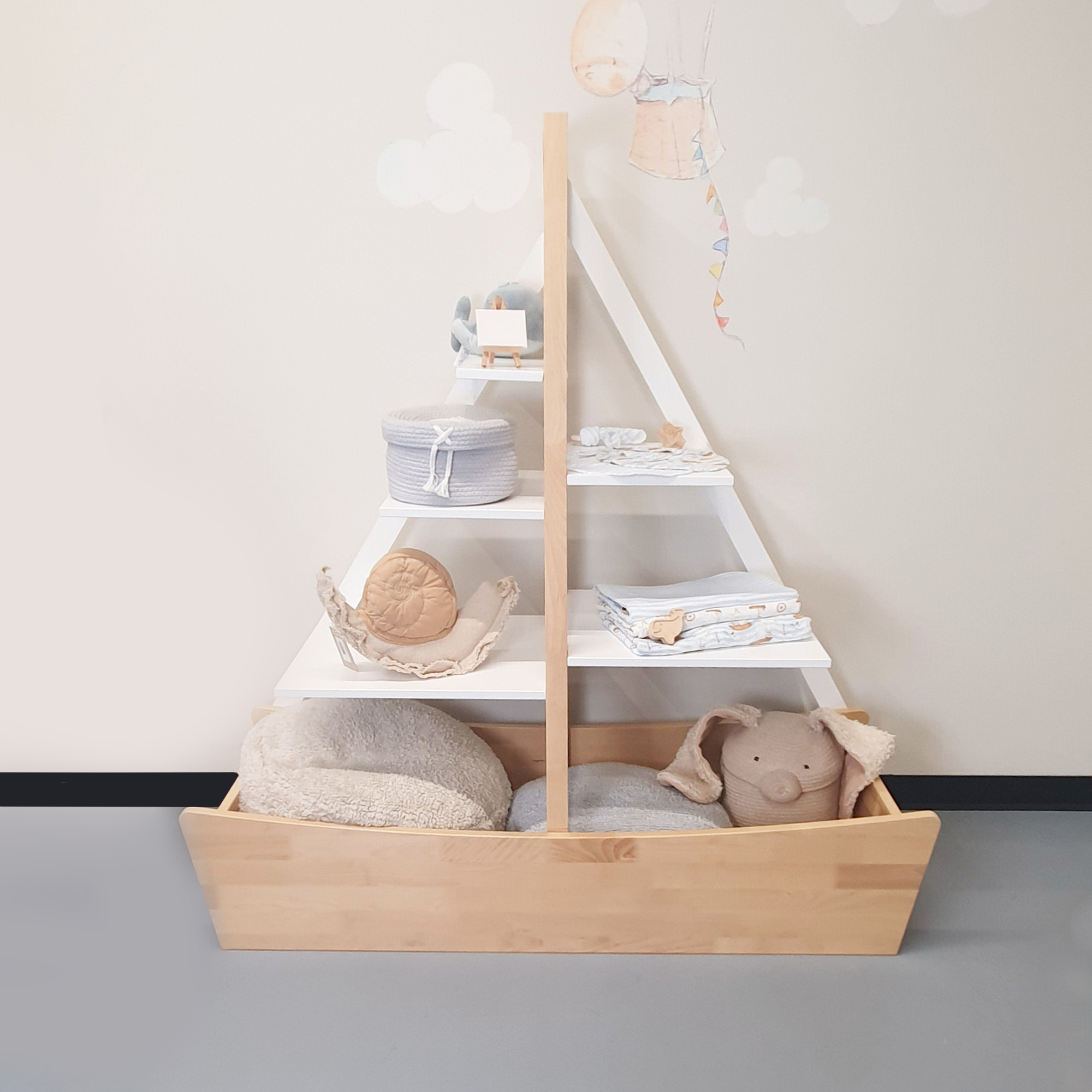 Приятные особенности: Отправьтесь в захватывающее морское путешествие прямо в детской комнате со стеллажом-фрегатом "Аврора"! Этот волшебный стеллаж, выполненный в виде кораблика, не только добавит в комнату ребенка игривого настроения, но и станет органайзером для хранения его любимых сокровищ.