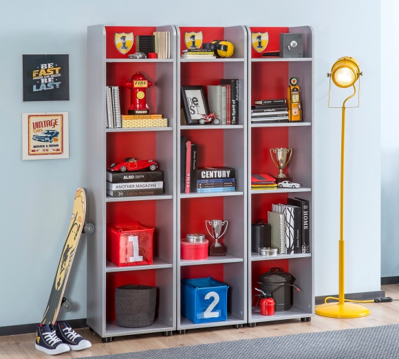 Приятные особенности:Стеллаж серии Racecup, выполнен с контрастным сочетанием цветов - красного и серого, он прекрасно подойдёт для детской комнаты мальчика. Вся мебель изготовлена из экологичных материалов и очень функциональна, предназначена для активного использования. Мебель прекрасно подойдёт для любой детской комнаты, предназначенной, как для учёбы, так и для отдыха. Для малышей вместе с этим стеллажом прекрасно сочетаются детские кроватки, сконструированные в виде машины. Можно также подобрать красивую группу мебели данной серии для подростка. Данный стеллаж имеет пять открытых секций, на которых удобно размещать красивые предметы, книги, а также и другие предметы, которые всегда должны быть всегда под рукой. Для размещения мелких предметов и игрушек, можно использовать вместительные пластиковые коробки, размещая их на нижней полке, так игрушки для малышей будут всегда легкодоступны, и в тоже время, аккуратно убраны в шкаф. Данный стеллаж имеет достаточно узкую и высокую конструкцию, которая позволяет ему прекрасно вписаться в помещение любой площади. Кроме того, этот стеллаж имеет модульный формат и, установив два или три таких стеллажа вместе, у вас получится прекрасной большой шкаф, в котором удобно разместить все необходимые вам и вашему ребенку предметы.
