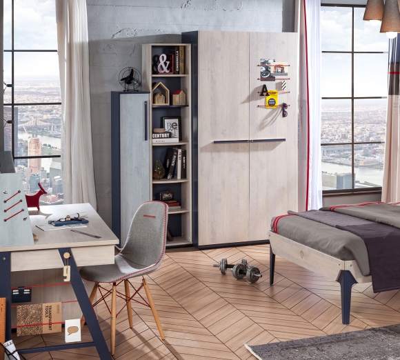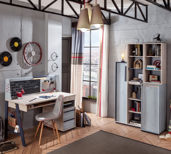 Приятные особенности:Вы можете себе представить детскую комнату без обилия милых безделушек, смешных фотографий в рамках и прочих мелочей, которые являются непременными атрибутами счастливого детства? Кажется, эти детали малозначительны, но для ребёнка они – целый мир. Поэтому принципиально важно иметь пространство для размещения этих дорогих ребёнку вещичек. Дизайнеры Cilek знают: у многих детских запросов есть универсальное решение – стеллаж Trio. Компактные габариты нисколько не мешают ему быть функциональным. На этих полочках ровно столько места, сколько может потребоваться юному хендмейдеру для увлекательных поделок или заядлому читателю для любимых книжек. А то, что ребёнок не желает выставлять на обозрение – всегда можно спрятать в маленький, но вместительный шкафчик. Рассматривая вариант стеллажа Trio, обратите внимание, как достойно он смотрится в комплекте с платяным шкафом и другими стеллажами этой же серии. Немного фантазии – и сочетание нескольких предметов мебели превращают обычную комнату в стильный мини-кабинет для школьника.