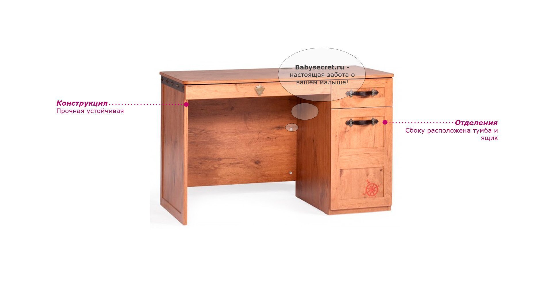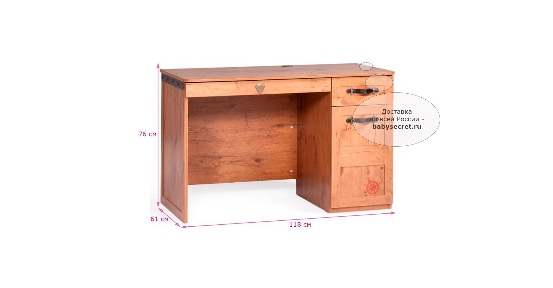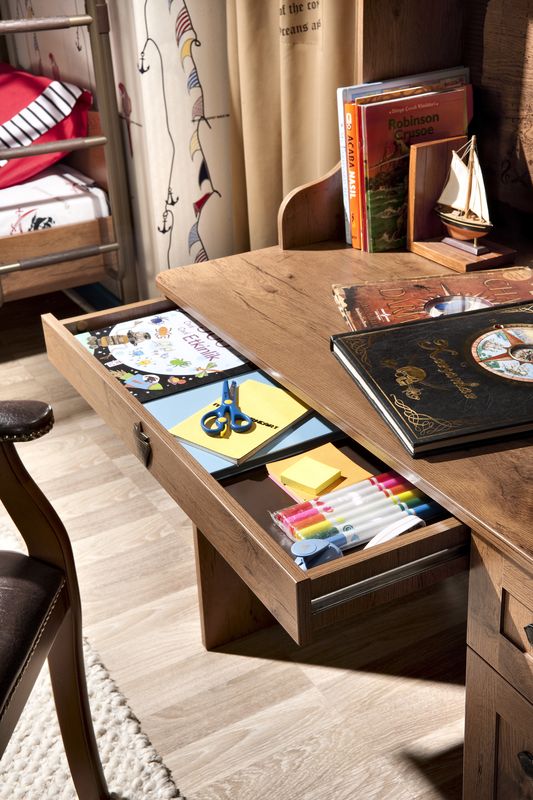 Производитель: Cilek (Турция) Материалы: Основные характеристики: Приятные особенности письменного стола Cilek Black Pirate: лопни моя селезенка, если это не комната настоящего пирата! Отличие настоящей комнаты для маленького сорванца состоит в обязательном наличии не просто удобной и качественной мебели, но и полноценного игрового пространства, развивающего воображение ребенка и позволяющего проявить необходимую активность. Дети дошкольного и школьного возраста нуждаются в отдельном письменном столе. В идеале подобная детская мебель должна быть прочной и функциональной, в ней должны быть предусмотрены ящики и тумбочки для мелких и больших вещей.Стол, выполненный в общей стилистике комнаты Cilek Black Pirate,отвечает всем этим требованиям. Может быть дополнен приставкой (приобретается отдельно),делающей его еще более функциональным и удобным. Все письменные столы сертифицированы и допущены к продажам и использованию на территории России. Одним из приоритетов в производстве мебели для детей является экологическая чистота материала и его безопасность для здоровья ребенка. Общие размеры:внешние (шхгхв) 118x61x76 см Вес: 43 кг Габариты в упаковке (ШxДxВ): Коробка стол 2 упаковки: 0.123 м3 , 43 кгГарантия: 12 мес.