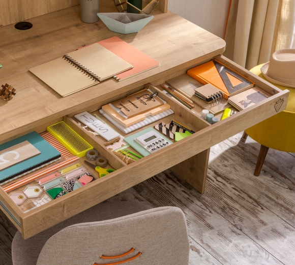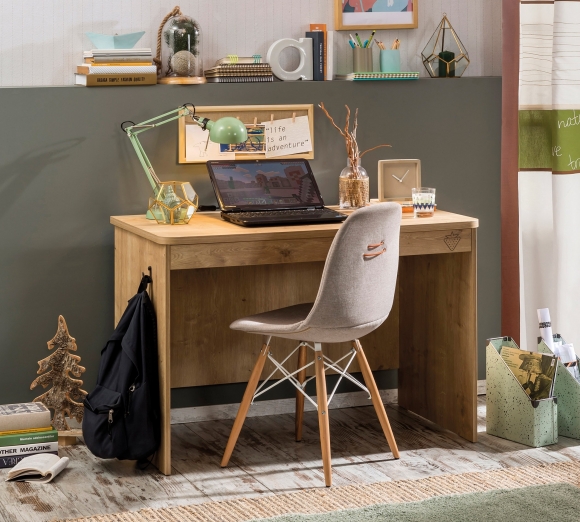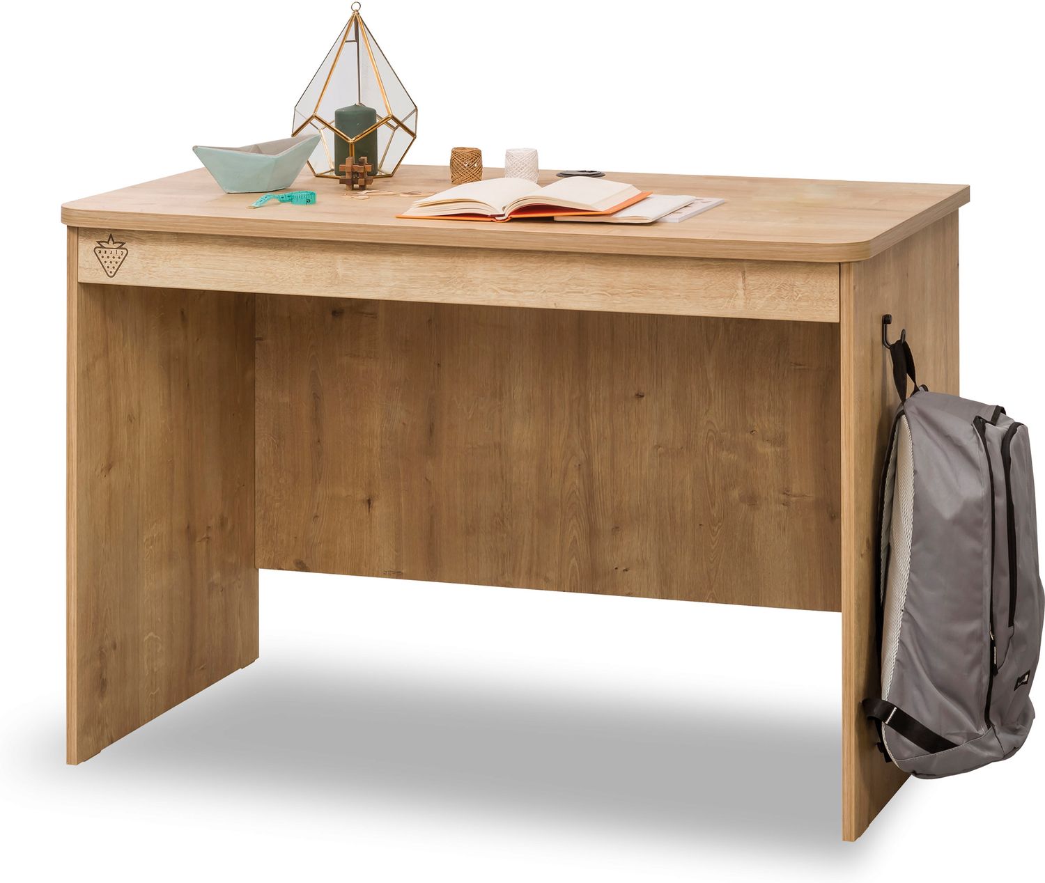 Приятные особенности:Письменный стол Cilek Mocha – серия мебели в классическом дизайне. Стол имеет форму прямоугольника с двумя сплошными ножками по сторонам. Задняя стенка также сплошная полностью скрывающая ноги, если стол не стоит возле стены. Письменная поверхность не имеет острых углов: они тут округленные для увеличения безопасности.Материал конструкции МДФ и ДСП. Цвет натурального дерева без добавления красителей. Вся кромка из мягкого ABS пластика. Выдвижной ящик только один, но он очень широкий и глубокий. Есть отверстие под компьютерные провода, если планируется его установка. Сбоку прикреплен стандартного вида крючок для навешивания на него портфеля или сумки. Стол подходит детям любого пола. Увеличить количество полок помогает надстройка, которая продается отдельно. Имеется логотип в виде клубнички на выдвижном ящике украшающий его поверхность. В остальном перед вами классический письменный стол, где удобно делать уроки или заниматься поделками. Снизу под столом отсутствует стандартная для такой мебели полка, что позволяет увеличить пространство для ног.