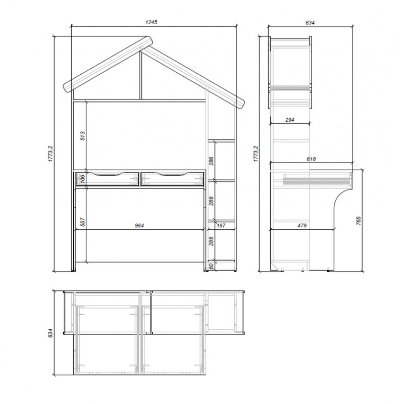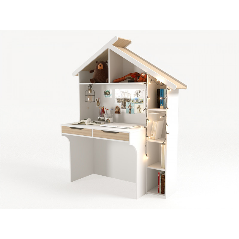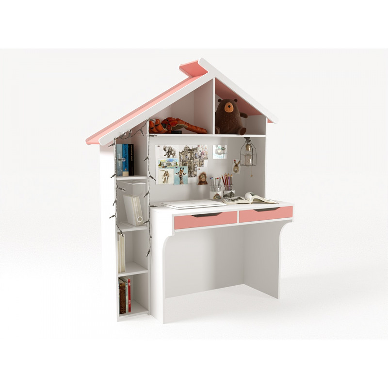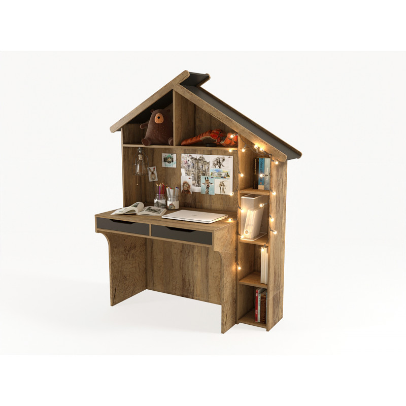 Приятные особенности:Стол-стеллаж ДОМИК имеет два выдвижных ящика для хранения письменных принадлежностей и полки для хранения книг.Детская мебель "ДОМИК" выполнена в коричневом цвете и цвет графит из ЛДСП EGGER. Кромка немецкая DOLLKEN закрыта со всех сторон каждой детали. Песли дверей с доводчиками. Ящики модулей с доводчиками скрытого монтажа. Фасады мебели покрыты меламиновым покрытием.