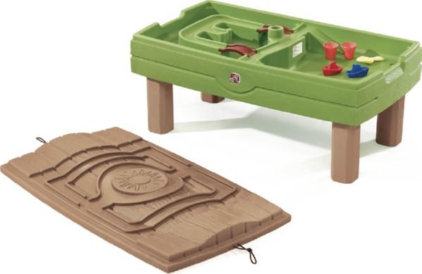 Приятные особенности :Замечательный столик для игр с песком или водой разнообразит досуг малышей в теплые летний день и доставит им море удовольствия и веселья. Столик имеет 2 игровые гоны, в комплекте предусмотрен яркий зонт, который можно установить в центр стола для создания искусственной тени и множество аксессуаров для увлекательной игры, включая лодки и мосты для создания гавани и формочки и совко для игр с песком.