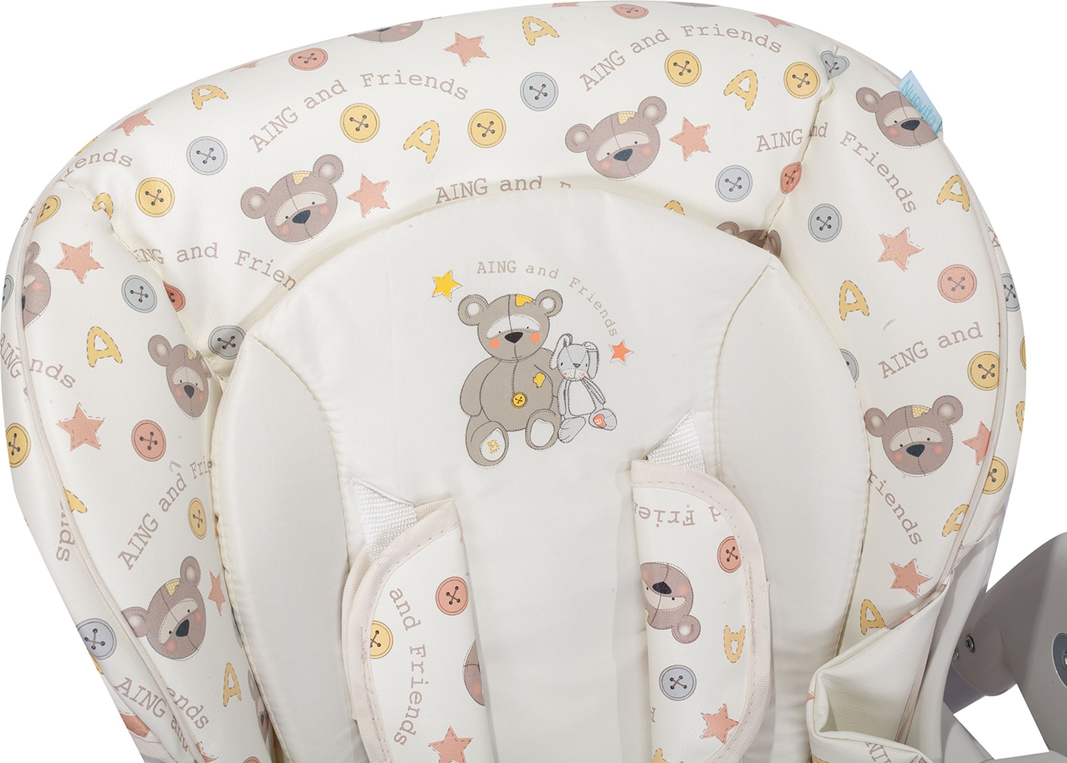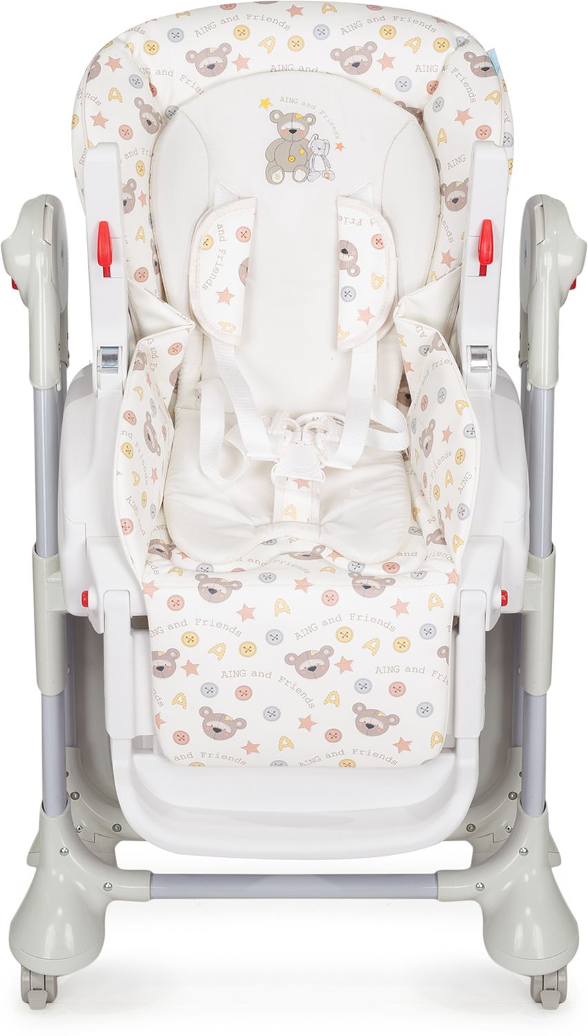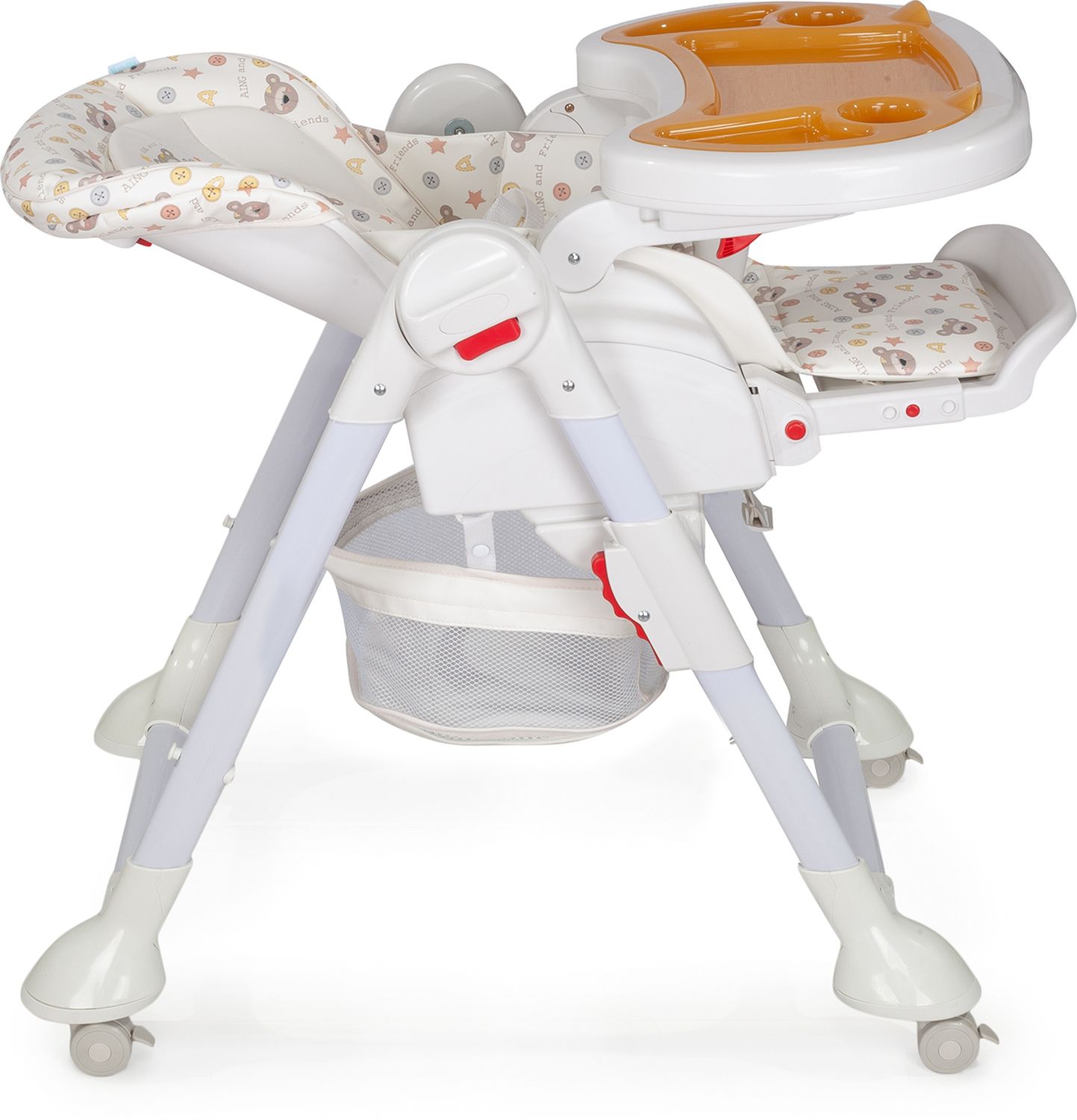 Сидение выполнено из качественной экокожи, которая прочна и проста в уходе. Отдельного внимания заслуживает стильный европейский дизайн с мягкими цветовыми сочетаниями. Дополнительными преимуществами для владельцев станут такие приятные «мелочи», как съёмный поднос с углублениями для чашек и бутылочек; корзинка для игрушек; поворотные колеса с надежной фиксацией и возможность хранения в сложенном виде без посторонней опоры.