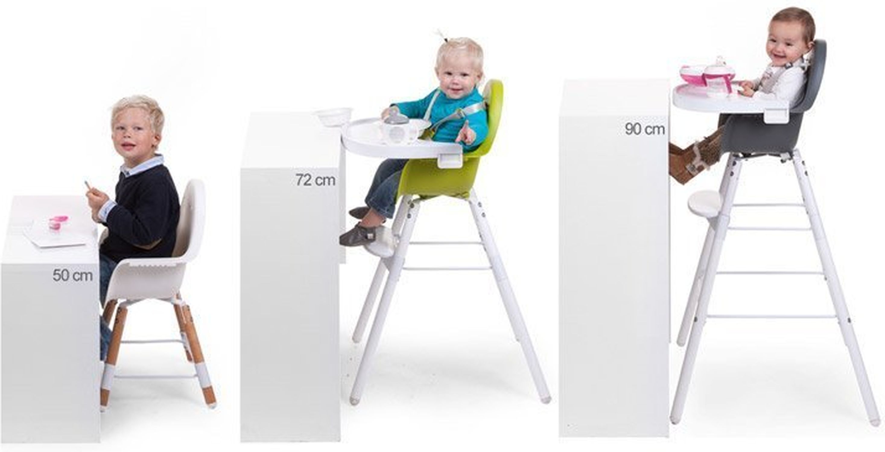 • благодаря лёгкой сборке настраивать высоту стульчика очень просто. Можно настроить в трёх положениях: для кухонного стола - 90 см (с опциональным комплектом для ног) для стандартного стола - 75 см для детского стола - 50 см