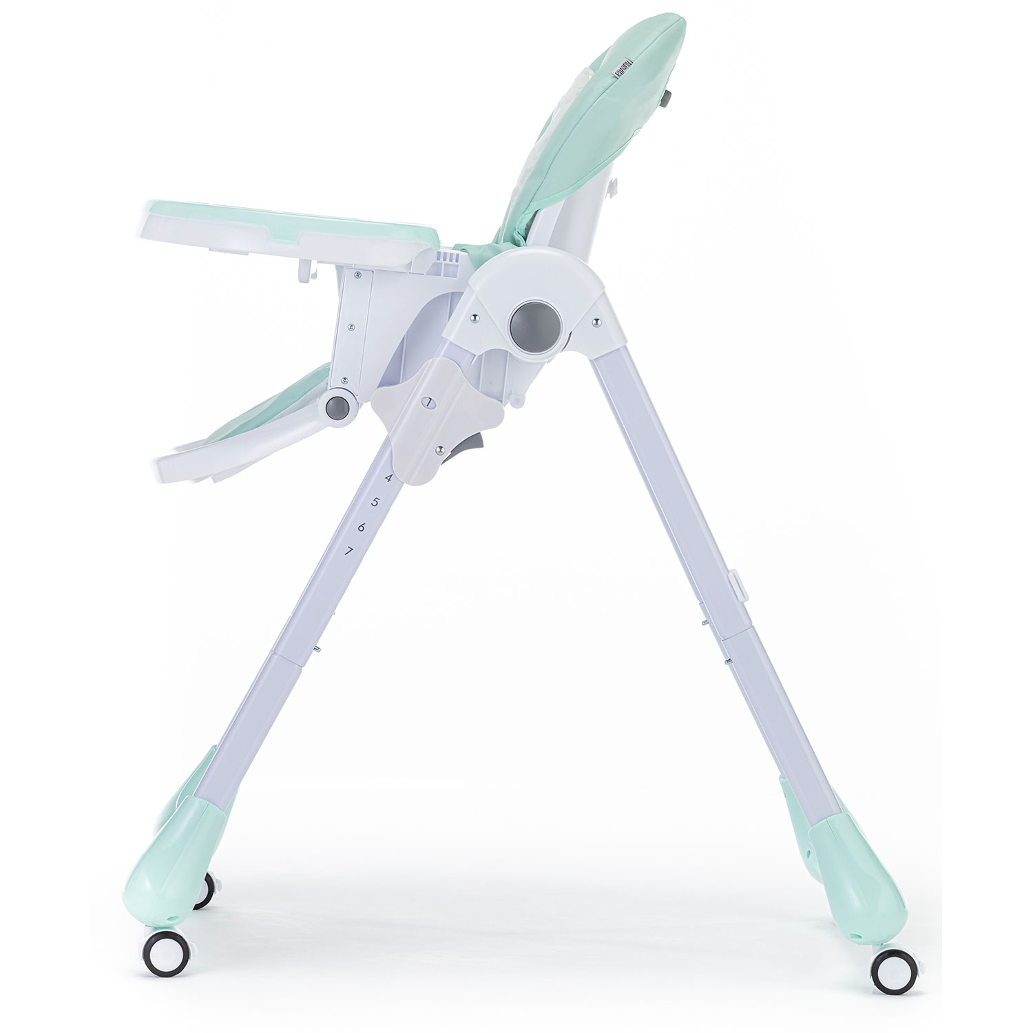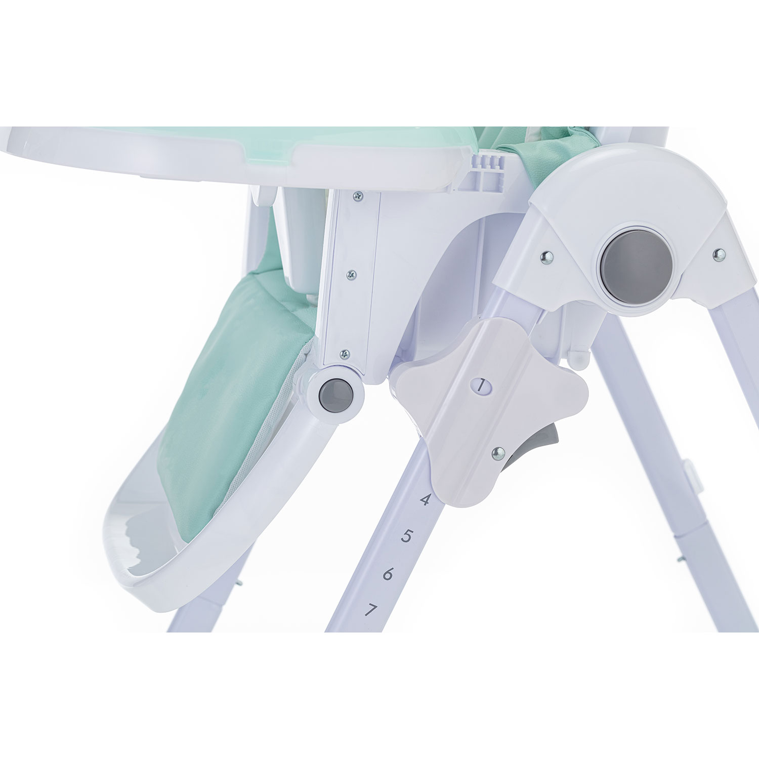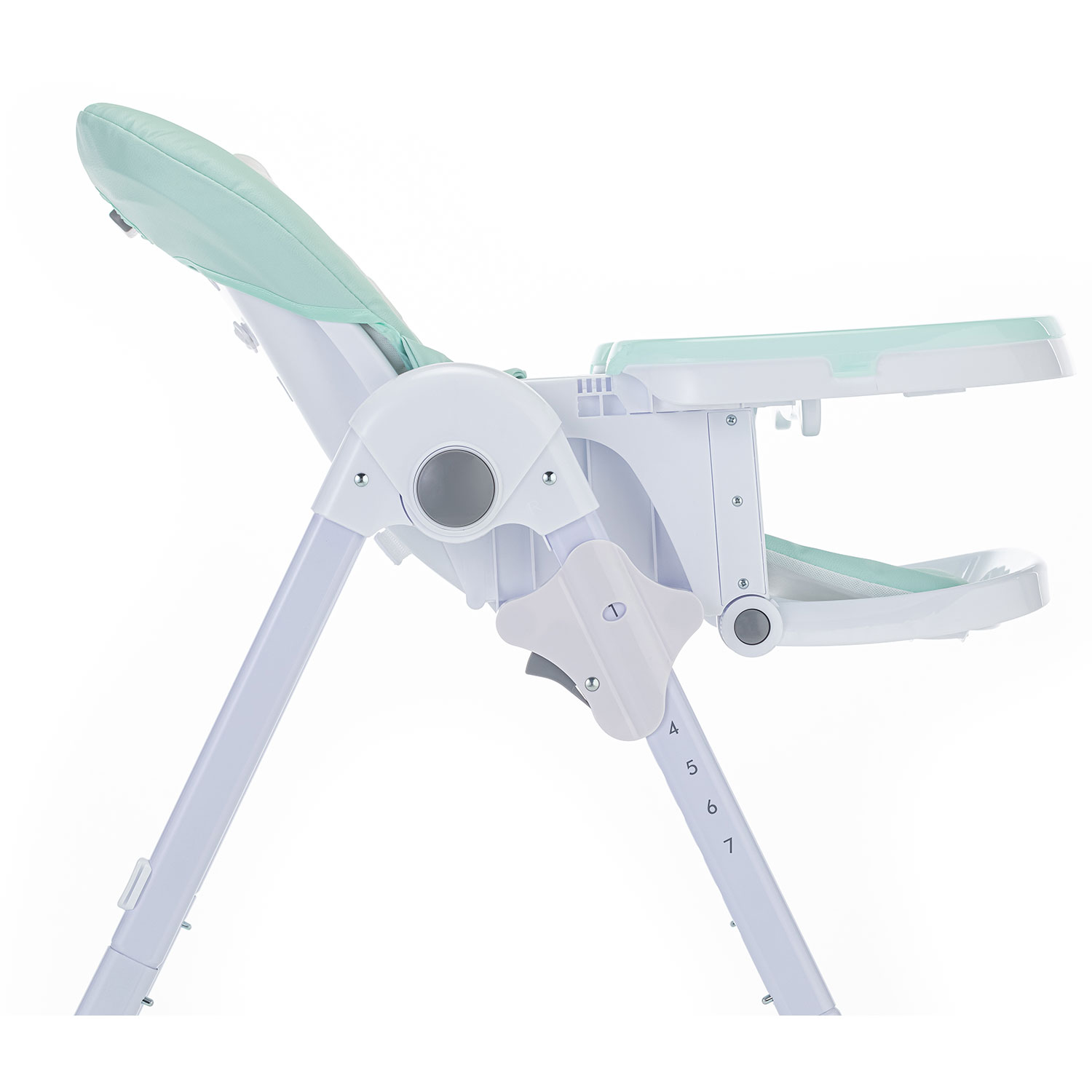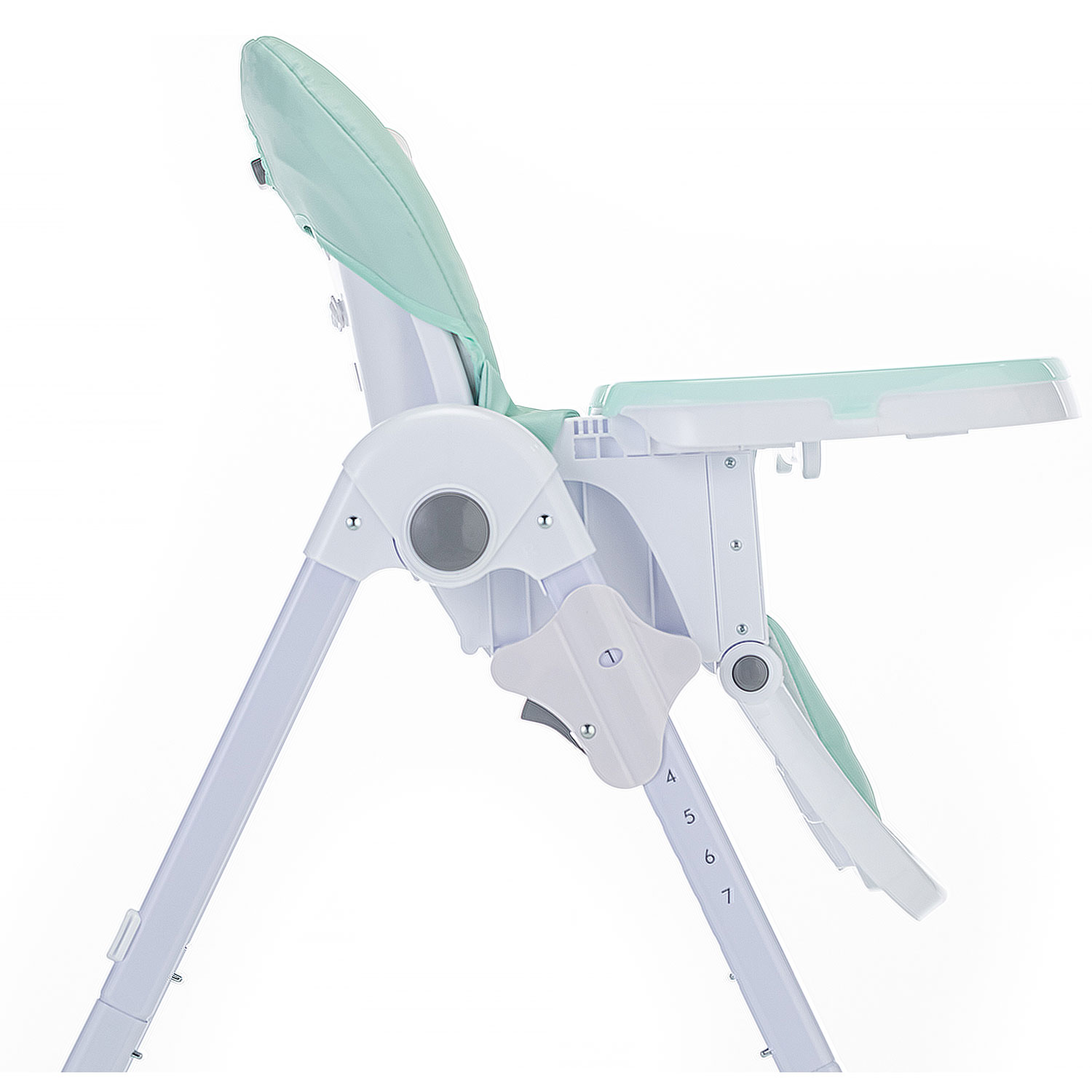 Анатомически правильная конструкция сиденья дает возможность подобрать для малыша наиболее комфортное положение для игры или отдыха. Это достигается при помощи регулировки наклона спинки (имеется 3 угла наклона, максимальный-130 градусов) и специальной подставки для ног (3позиции). При максимально разложенной спинке стульчик можно использовать в качестве шезлонга.