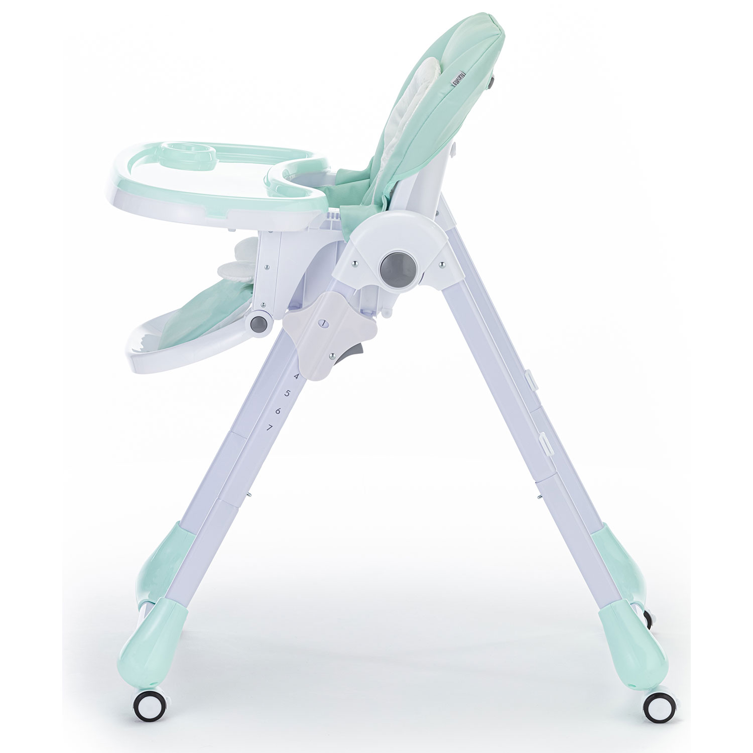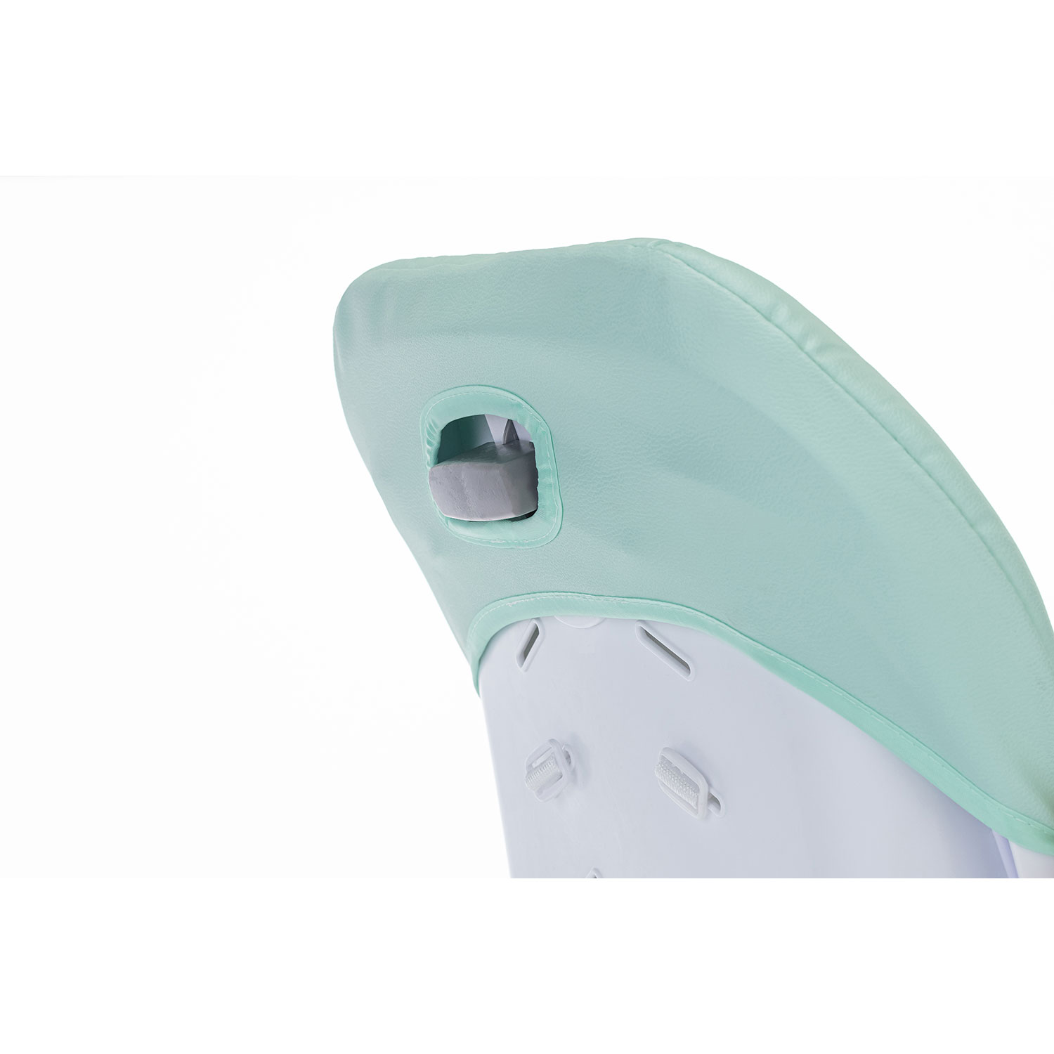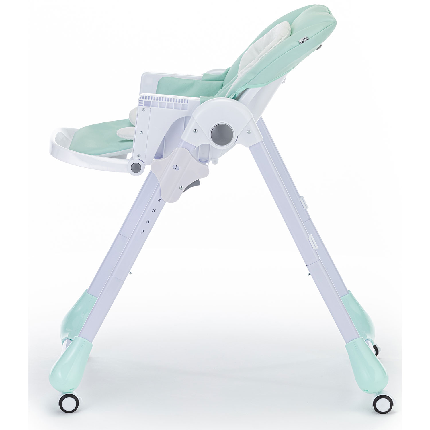 Анатомически правильная конструкция сиденья дает возможность подобрать для малыша наиболее комфортное положение для игры или отдыха. Это достигается при помощи регулировки наклона спинки (имеется 3 угла наклона, максимальный-130 градусов) и специальной подставки для ног (3позиции). При максимально разложенной спинке стульчик можно использовать в качестве шезлонга.