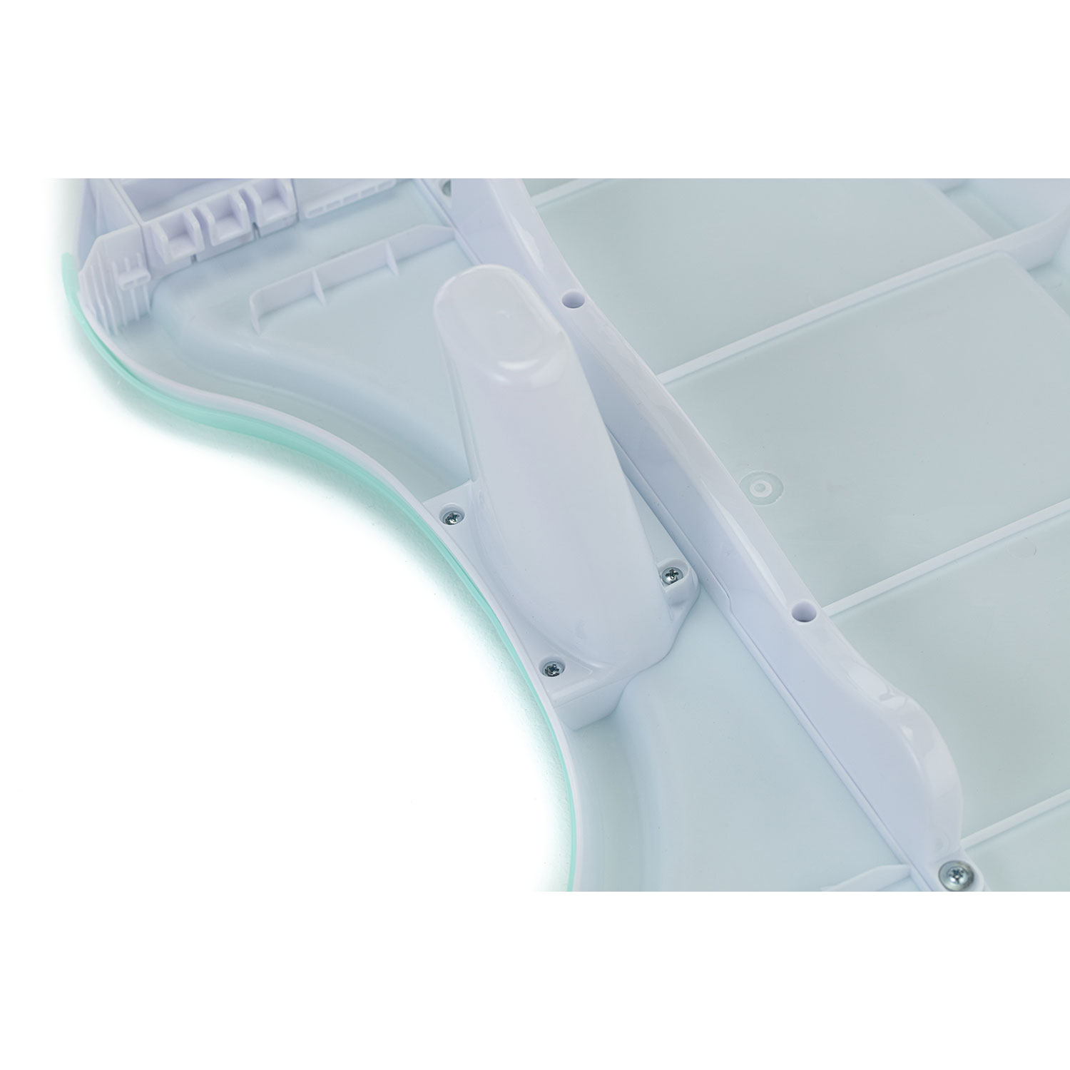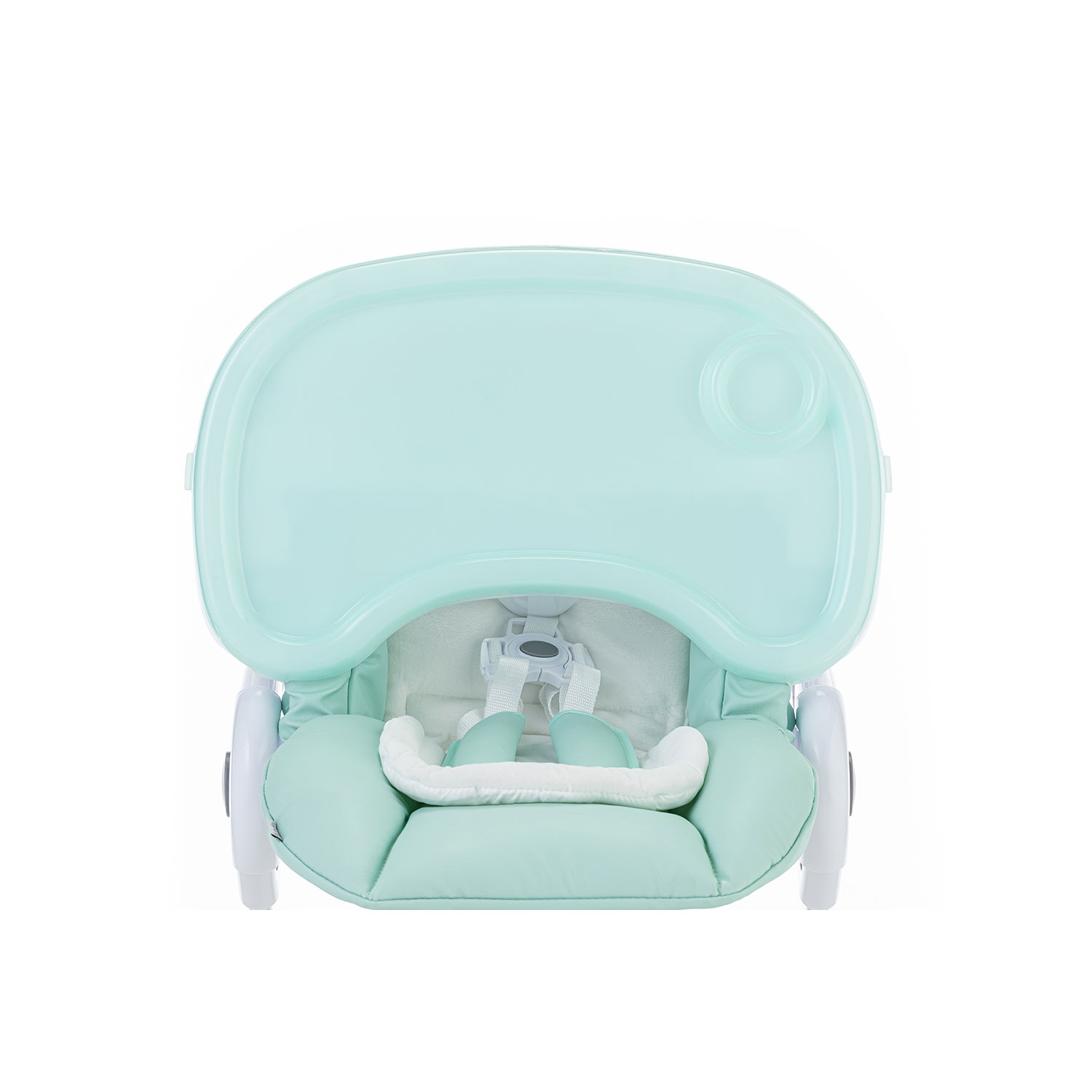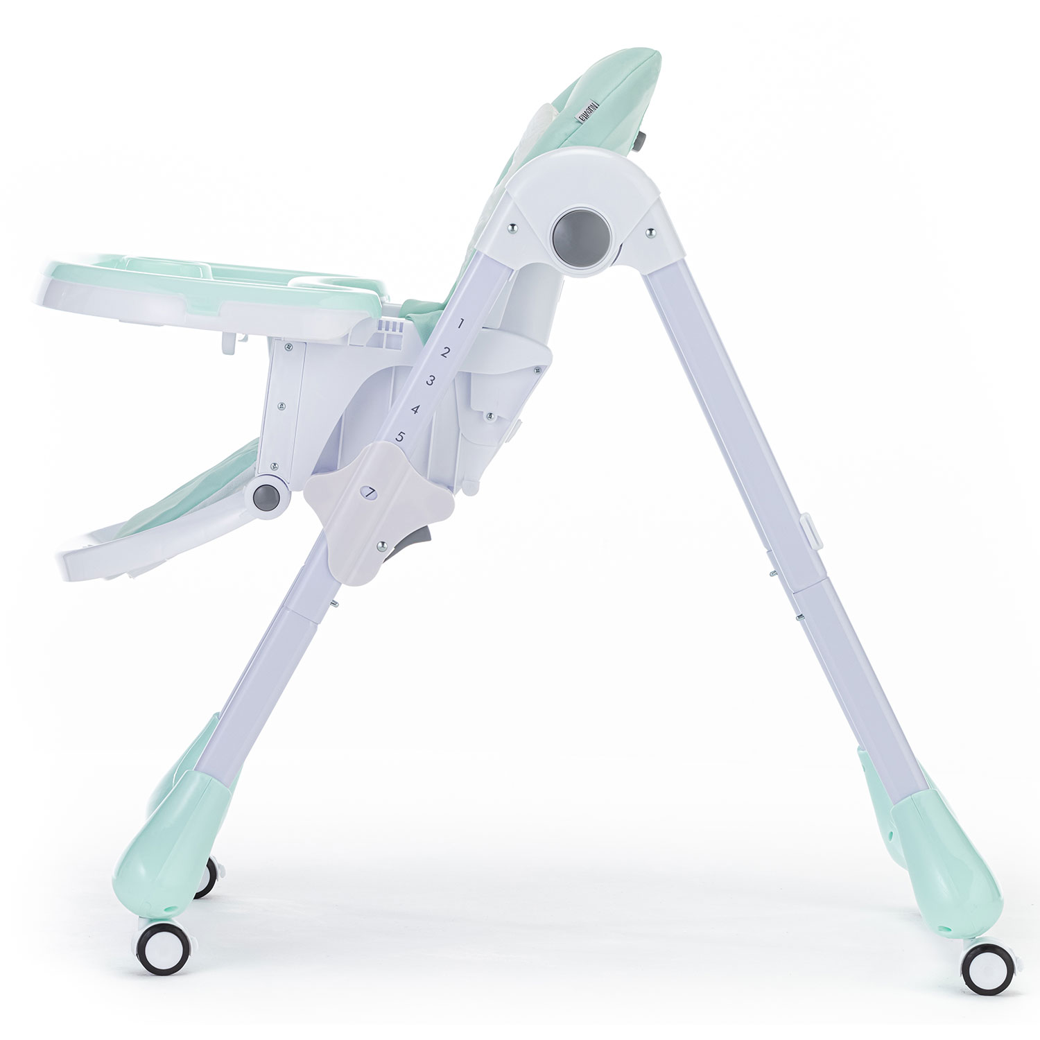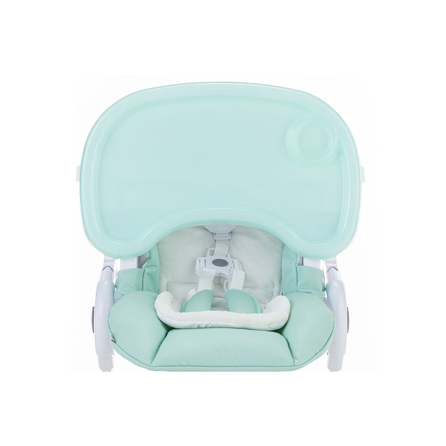 Анатомически правильная конструкция сиденья дает возможность подобрать для малыша наиболее комфортное положение для игры или отдыха. Это достигается при помощи регулировки наклона спинки (имеется 3 угла наклона, максимальный-130 градусов) и специальной подставки для ног (3позиции). При максимально разложенной спинке стульчик можно использовать в качестве шезлонга.