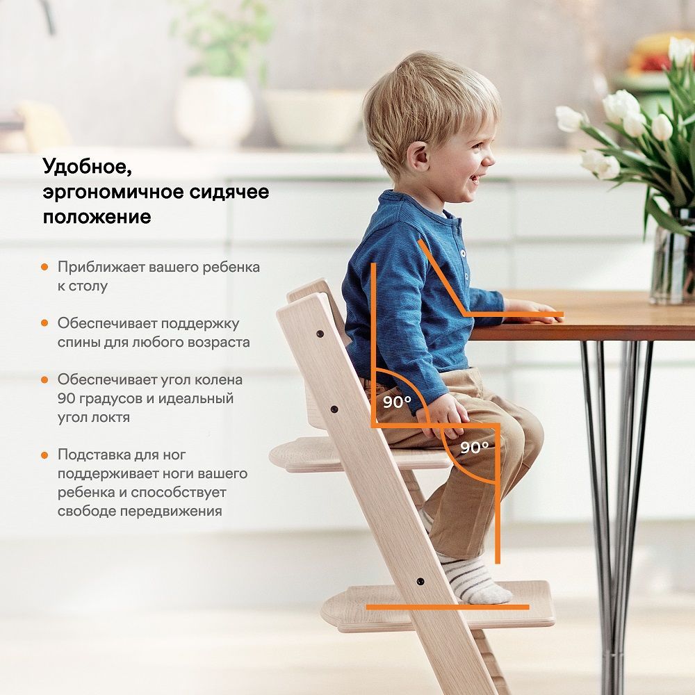 Приятные особенности: Задумывались ли Вы когда-нибудь, насколько важно для малыша в первые годы его жизни чувствовать себя полноправным членом семьи? В современной жизни с её сумасшедшим ритмом порой очень сложно сохранить прекрасные семейные традиции, такие как пышное семейное торжество или повседневный семейный обед; В такие важные моменты нельзя лишать маленького ребёнка возможности находиться рядом со всей семьёй и ощущать себя её неотъемлемой частью; Обычные стульчики для кормления, как правило, не соотносятся по высоте с высотой стандартного обеденного стола; Известный норвежский дизайнер Питер Опсвик, наблюдая за своим сыном, задумал решить эту проблему – так появился на свет уникальный в своём роде стульчик Stokke Tripp Trapp®;Сидение и подножку стульчика можно отрегулировать по глубине и высоте: для этого имеется 14 пазов – гарантия того, что Вы сможете подобрать идеальную для малыша позицию сидения; Дополнительно к стульчику можно приобрести различные аксессуары, которые не только сделают Stokke Tripp Trapp® ещё ярче и оригинальнее, но и сделают его по-настоящему мультифункциональным и позволят использовать стульчик не только новорождённым, но и взрослым.