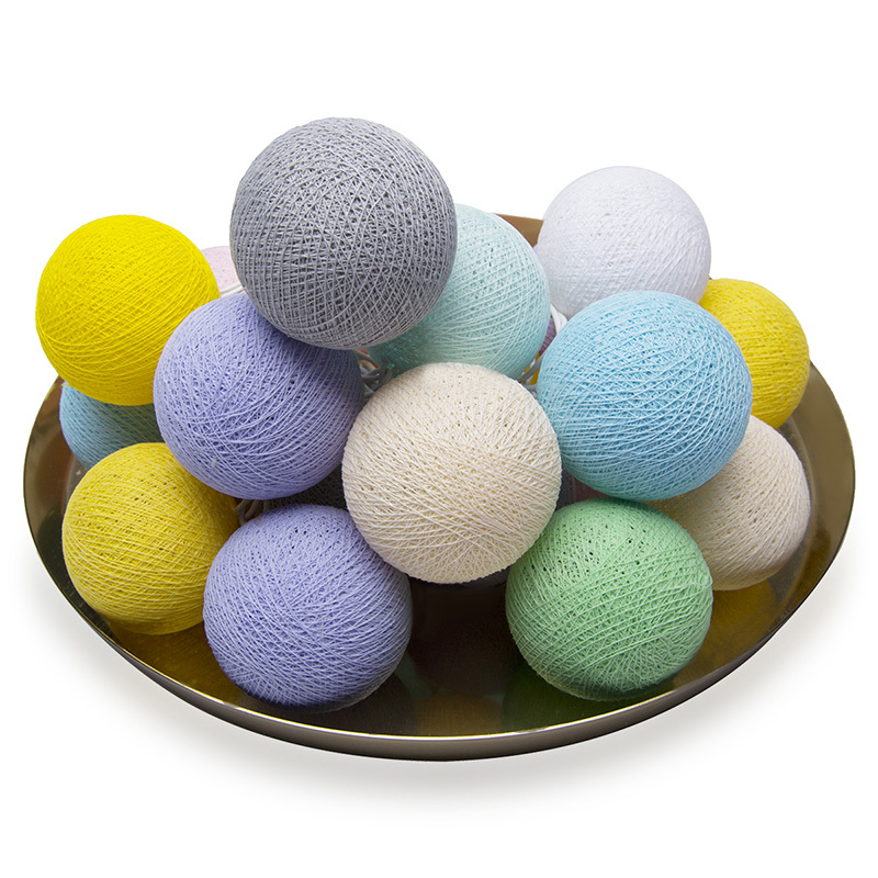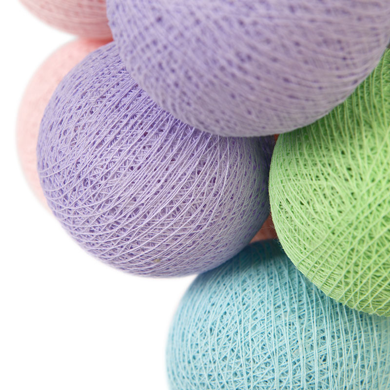 Приятные особенности:Гирлянды из хлопковых шаров становятся в нашей стране все популярнее и популярнее. Обусловлено это тем, что они абсолютно безопасны и никак не смогут травмировать ребенка: нагревательный элемент надежно спрятан в шарике, но при этом он не соприкасается с самой хлопковой нитью. Таким образом, это самый безопасный и самый красивый осветительный прибор! Гирлянду из хлопковых шаров можно использовать в качестве декора для самого вигвама, для комнаты ребенка, для украшения праздничного стола, для украшения вечеринки, для чего угодно!