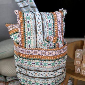 Приятные особенности:Мягкая вместительная корзина для хранения детских игрушек.Корзина ручной работы, изготовлена из безопасных для детей материалов.Можно стирать в стиральной машине при 30-40 градусов.