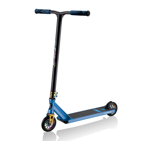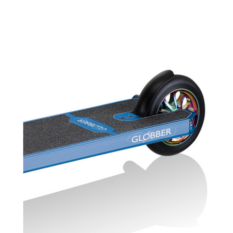 Приятные особенности:Трюковой самокат Globber GS 900 — один из лучших представителей экстремальной линейки Globber. Все его характеристики говорят об этом. Прочная металлическая дека выполнена из алюминия Т6. Конкейв 2 градуса позволяет снизить динамическую нагрузку на самокат, делая снаряд долговечным и более выносливым для выполнения трюков. Габариты платформы делают эту модель удобной для упражнений во фристайле. Прямой Т-образный руль с TRP 165 мм грипсами гарантирует уверенное управление самокатом во время езды и при выполнении трюков. Благодаря небольшому весу и высокой маневренности этот самокат рекомендован детям с 8 лет.