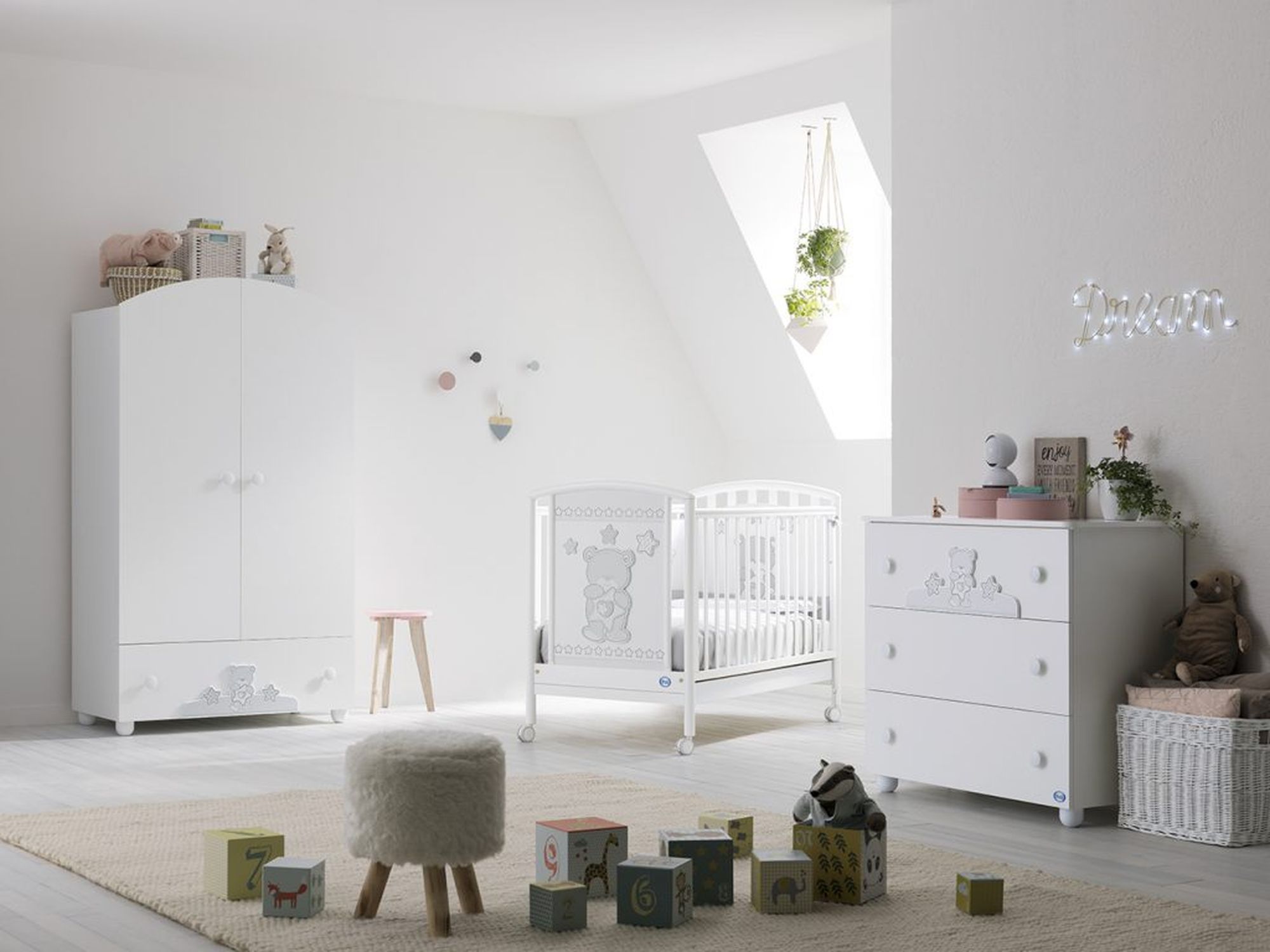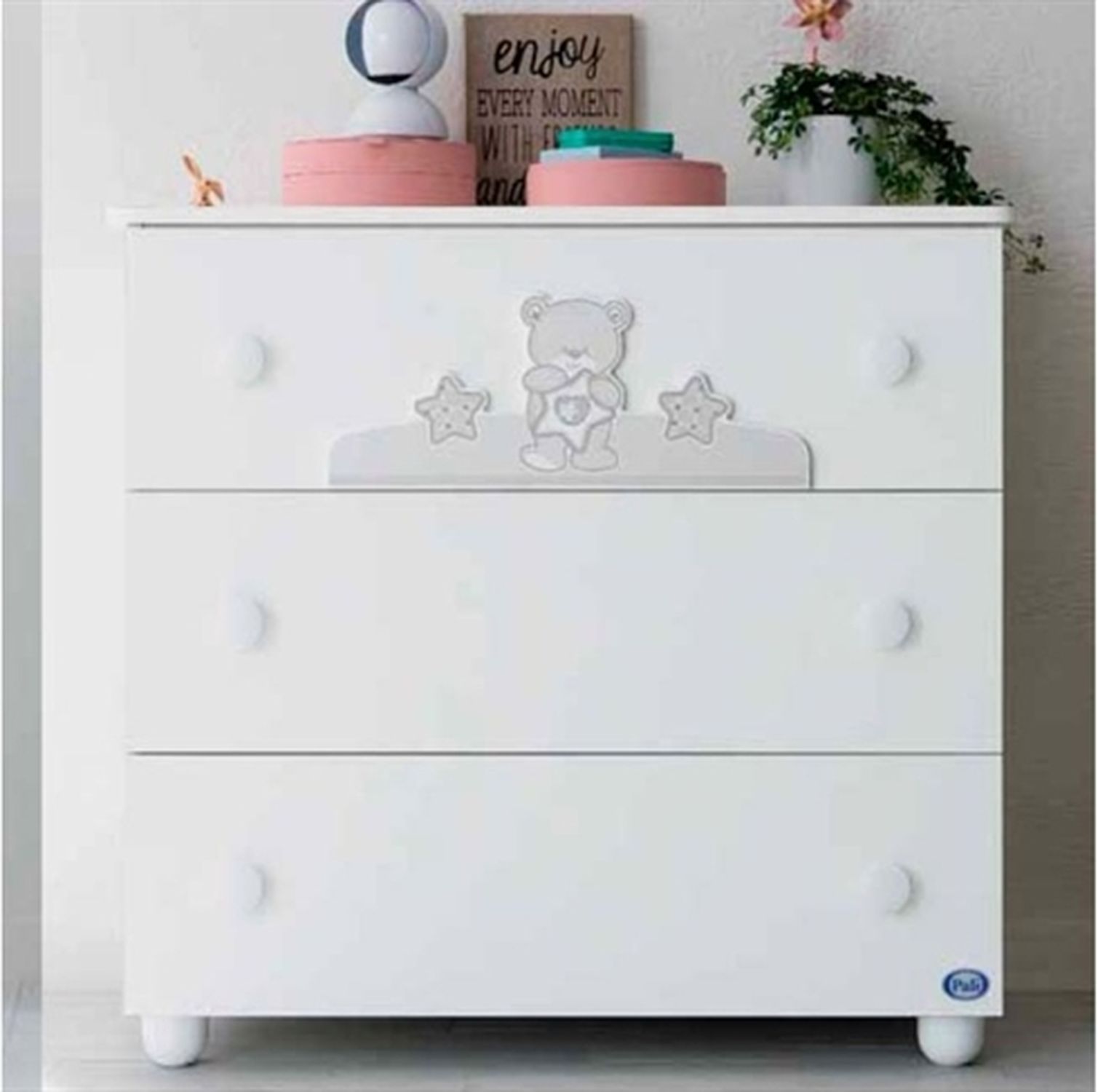 Приятные особенности:Детская комната Pali Birba (Бирба) белый (white) новый недорогой набор детской мебели, состоящий из шкафа, пеленального комода, кроватки. Выполнен в классическом белом цвете. Является основой коллекции Pali Birba (Бирба). Все элементы детской комнаты украшены объёмными рисунками нежных цветов. Изготовлены из современных экологически чистых материалов.