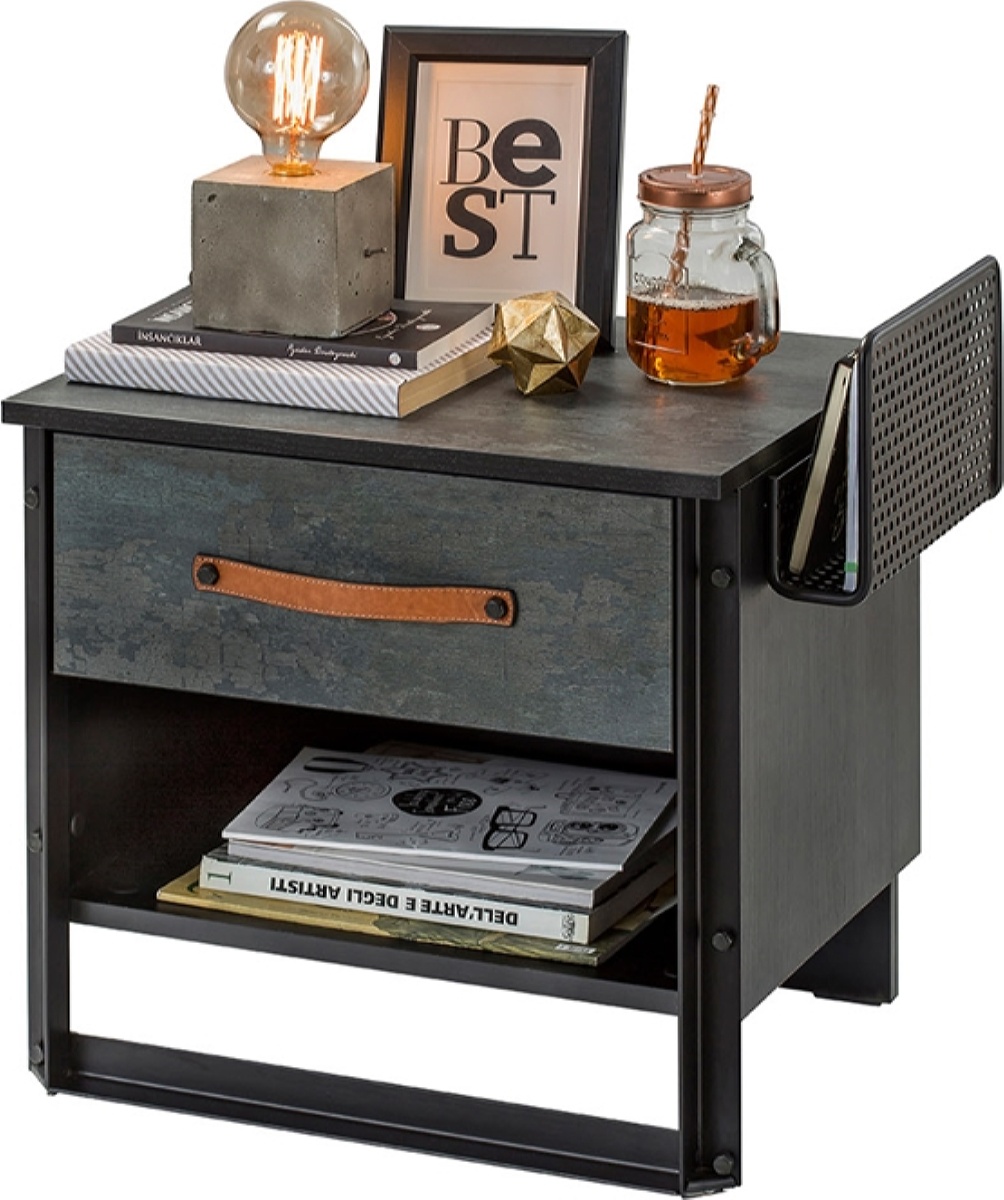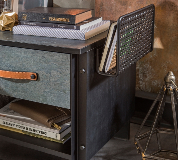 Приятные особенности: Необычная прикроватная тумбочка Dark Metal от турецкого производителя Cilek подойдет для молодежных комнат, дизайн интерьера которых выполнен в стиле лофт. Модель станет лаконичным дополнением к подростковой кровати. В каждой детали конструкции разработчики постарались воплотить самые креативные решения и смелые идеи, которые придутся по вкусу творческим и неординарным личностям, предпочитающих выделиться из толпы. Изделие добавит своеобразный эффект в обстановку комнаты и выделит ее харизму. Стильная тумбочка Dark Metal Cilek изготовлена из экологически чистого материала - качественного ламинированного ДСП, отвечающего европейским стандартам. Этот композит гипоаллергенный и не издает вредного запаха, поэтому полностью безопасен для детского здоровья. Конструкция модели представлена удобной полочкой, выдвижным ящиком и сетчатой незамысловатой формы подставкой для книг. Функциональность прикроватной тумбочке придает прочная и надежная фурнитура. Устойчивость изделию обеспечивают ножки оригинальной формы.