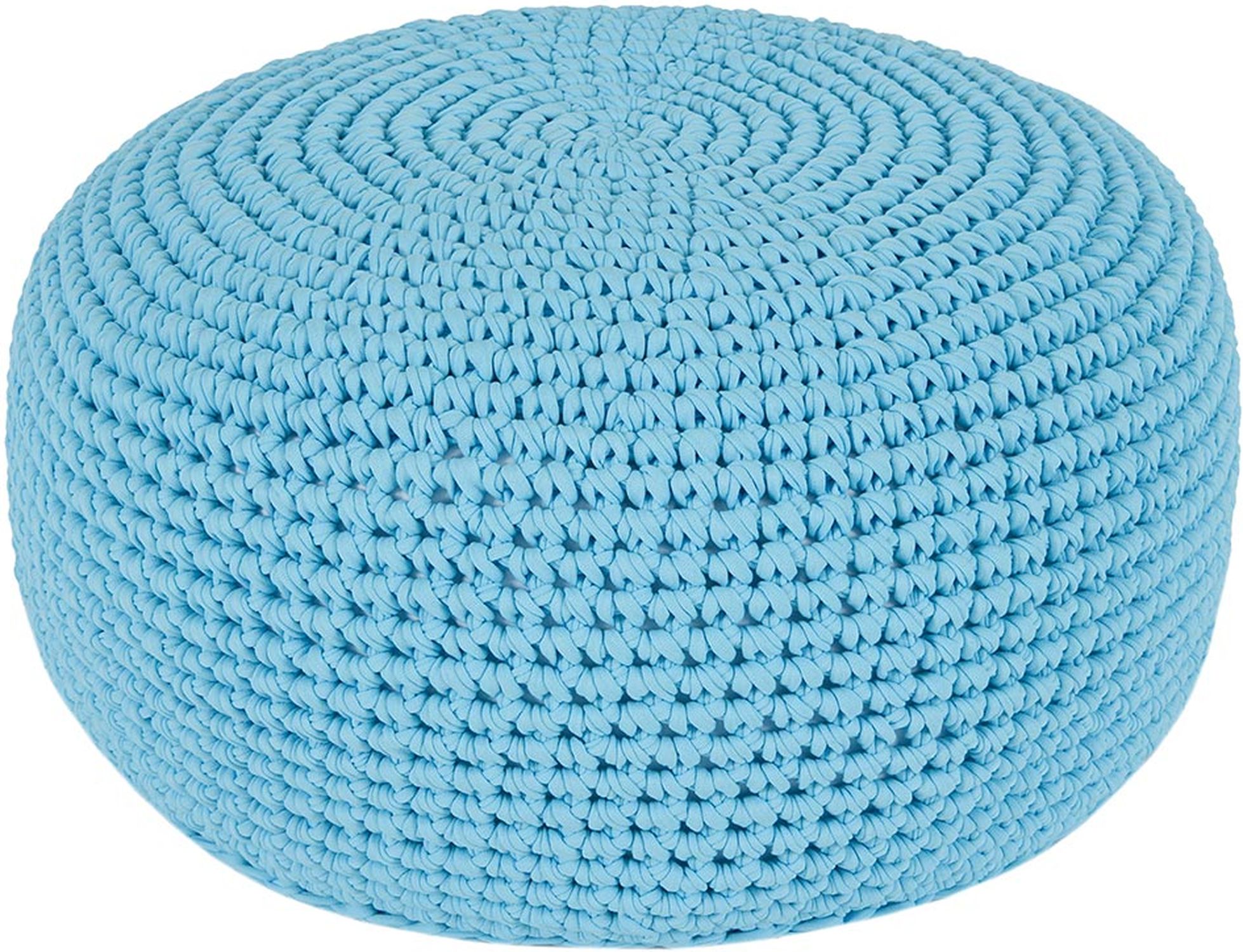Приятные особенности: Яркий вязаный пуфик голубого цвета будет отлично смотреться в детской, в которой преобладают нежные оттенки. На пуфике удобно и мягко сидеть, а ещё его можно использовать в качестве столика или подушки для ног. Такой вязаный пуф станет отличным подарком для маленьких непосед.