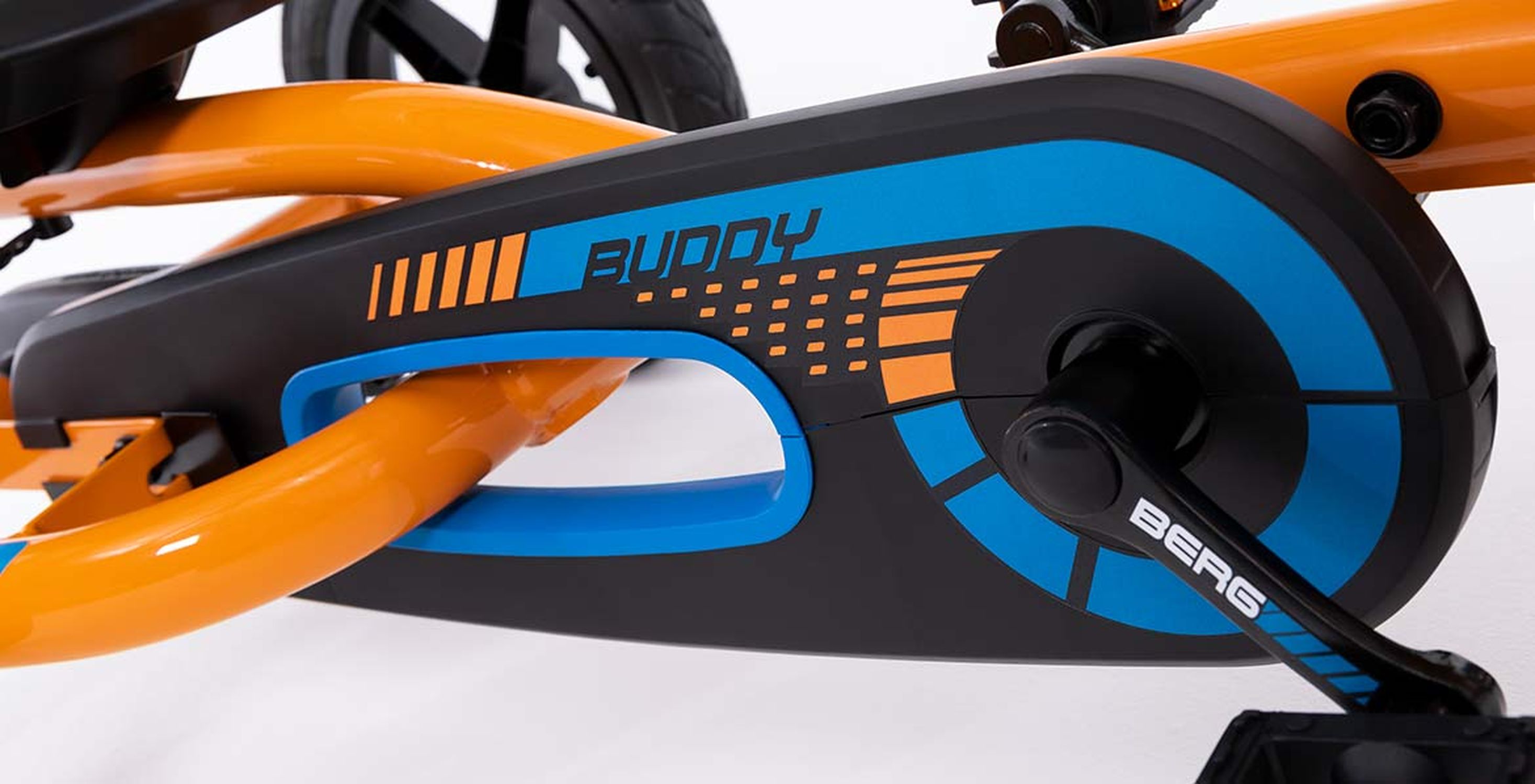 Приятные особенности веломобиля Berg Buddy:Стильная классика! С этим стильным веломобилем оранжевого цвета играть на улице стало еще интереснее! Благодаря возможности регулировать руль и сиденье Вы сможете наслаждаться приключениями долгие годы. Уникальный привод BFR позволяет двигаться вперед, тормозить педалями и ехать назад сразу после остановки.Крутой веломобиль - захватывающие приключения!Вместе c BERG Buddy ваша жизнь станет полна приключений! Стильный и безопасный веломобиль отличается устойчивостью и хорошо держит сцепление с дорогой, даже совершая резкие повороты.Откройте для себя мир вместе с крутым веломобилем BERG! Вам не придется волноваться, ведь BERG Buddy отвечает всем требованиям безопасности. Привод BFR позволяет без труда перемещаться по окрестностям. Веломобиль BERG Buddy будет расти вместе с вами и останется вашим лучшим другом на долгие годы.