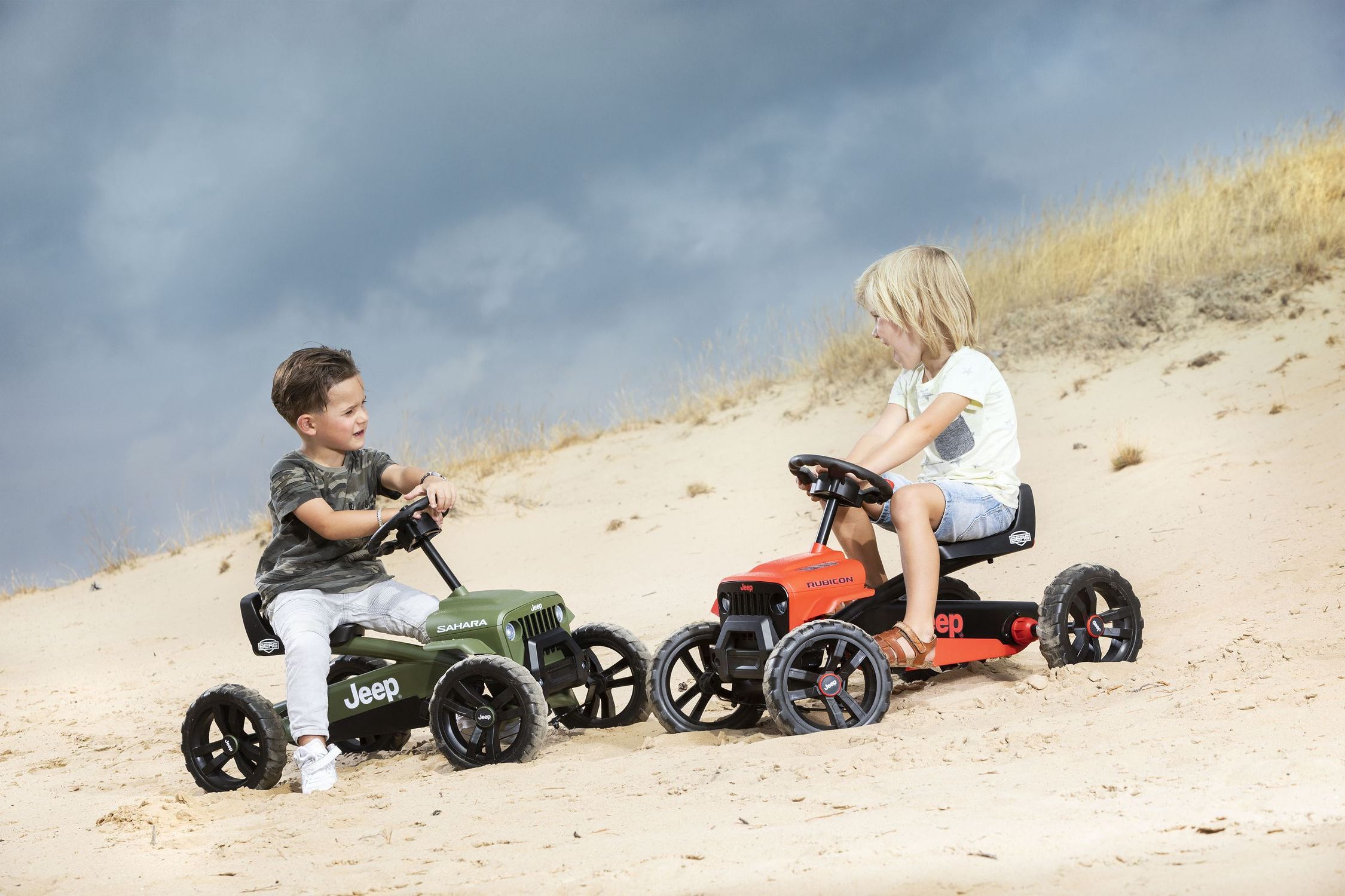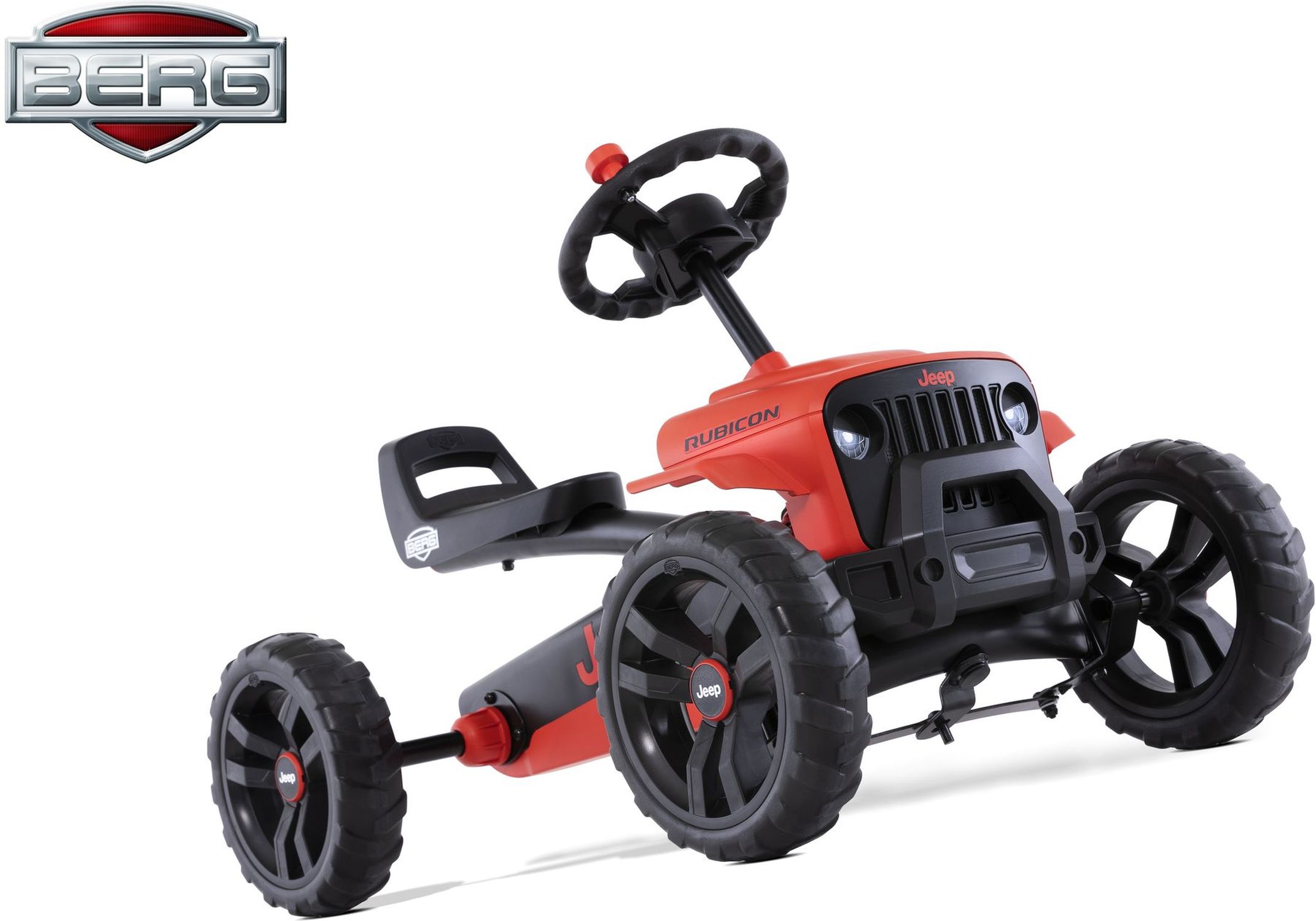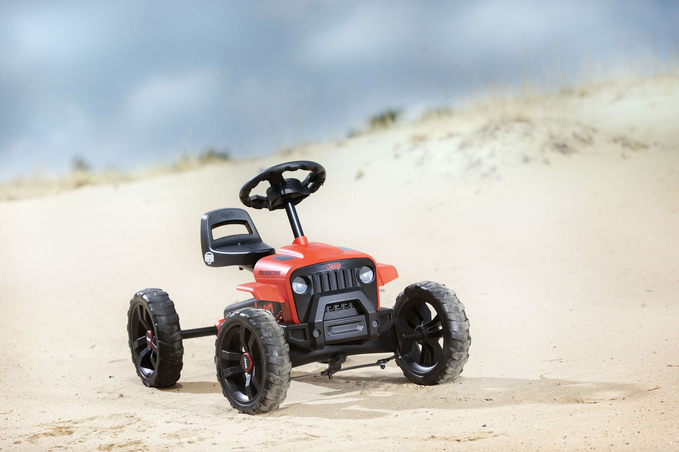 Приятные особенности:Jeep Buzzy Rubicon - это настоящее ощущение бездорожья. Шины с внедорожным протектором, круглый руль с поворотной ручкой, а также крутой капот с решеткой и злобными глазами делают его настоящим джип-рубиконом. 4 шины EVA обеспечивают надежное сцепление этого веломобиля.Почему BERG серии Buzzy?У веломобиля четыре колеса, а значит он гораздо более устойчив, чем трехколесный аналог. Ноги ребенка надежно стоят на педалях даже при крутых поворотах. Размер BERG Buzzy делает его пригодным для использования в помещениях и на открытом воздухе. Даже дождь не помеха для веселой и увлекательной поездки на веломобиле. Веломобиль рассчитан на возрастную группу от 2 до 5 лет.