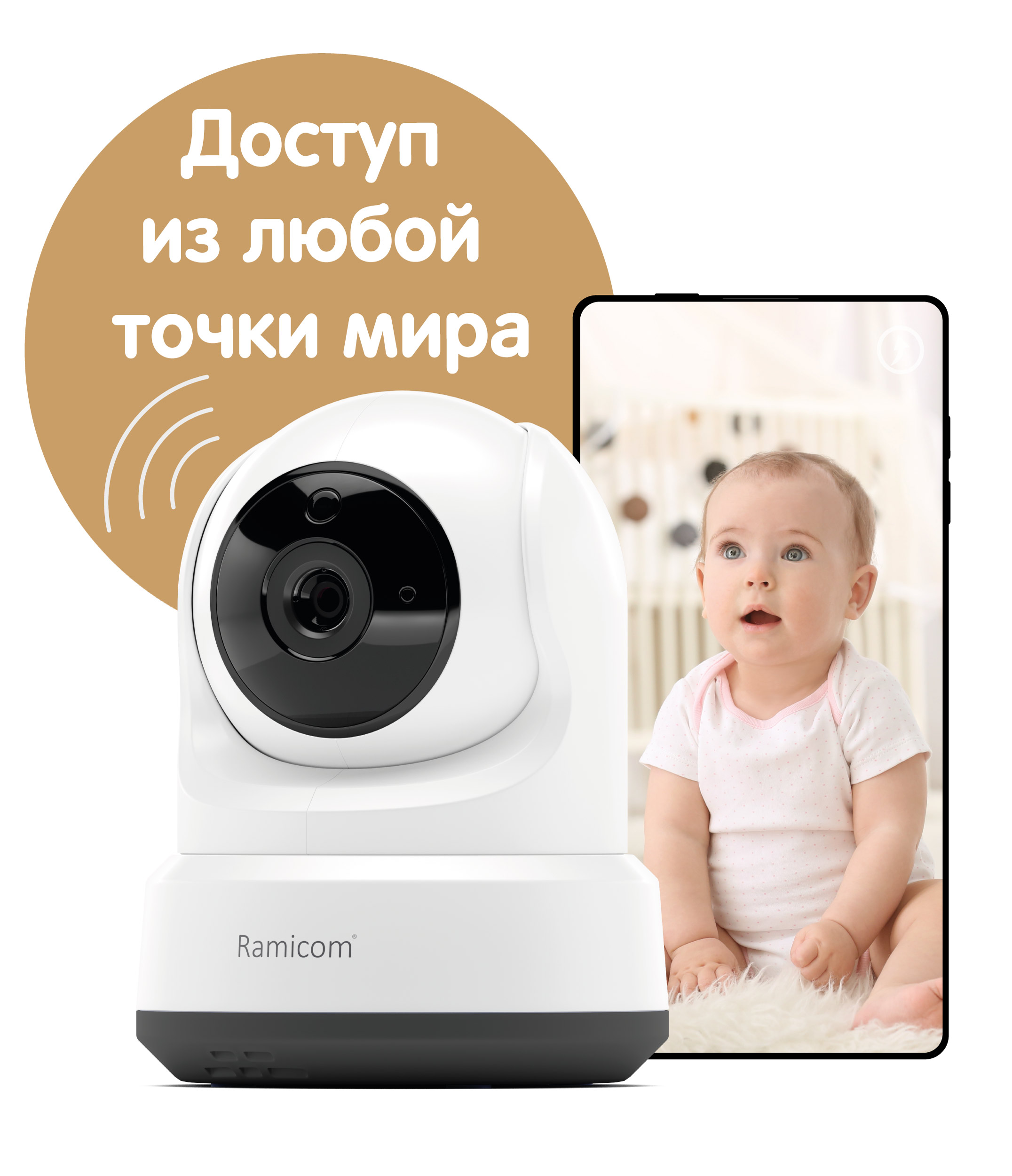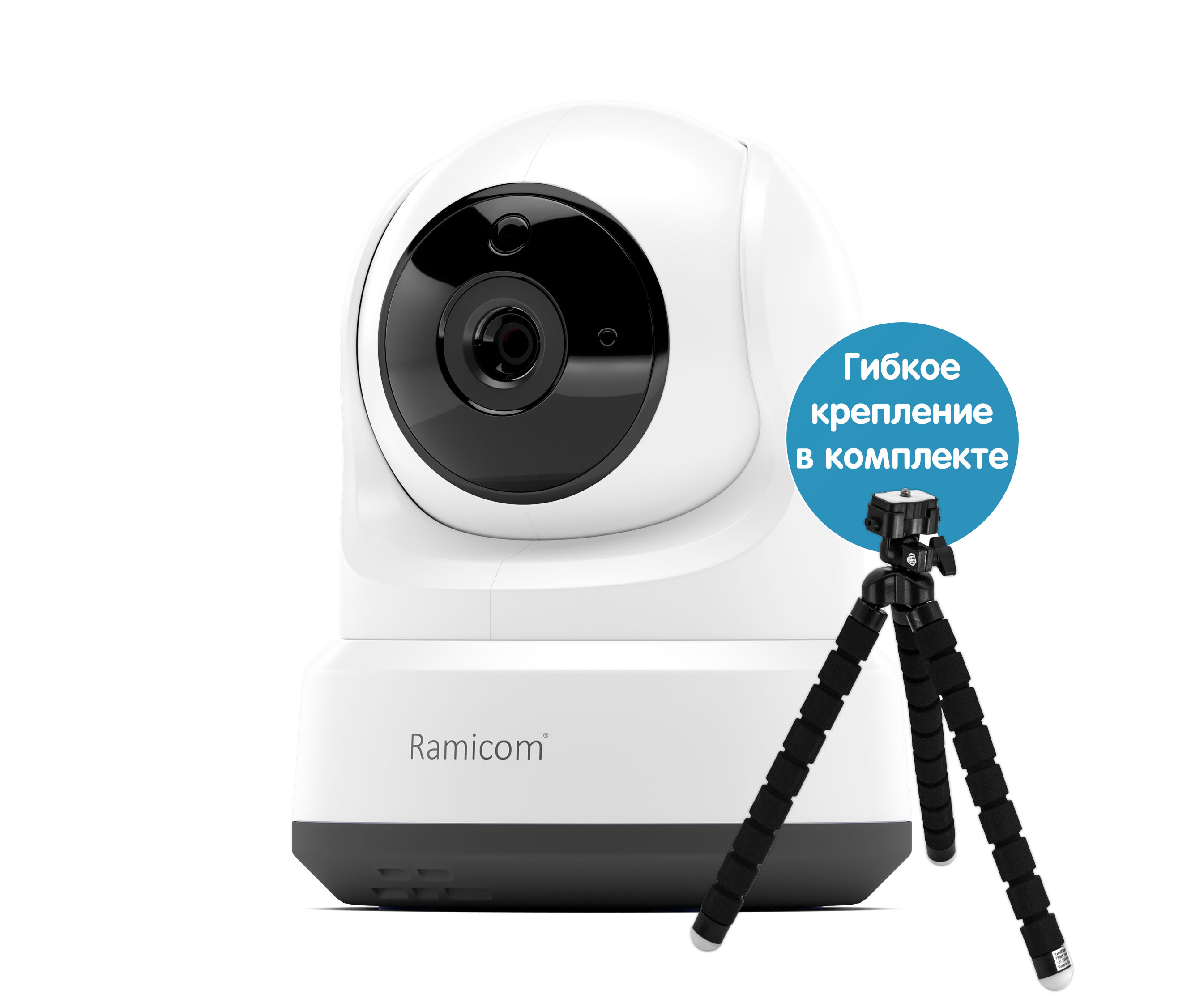 Приятные особенности: Эта видеоняня представляет из себя камеру с разрешением HD 720p, которая подключается к вашей домашней сети Wi-Fi и становится доступна через приложение на смартфоне или планшете (Android, iOS). С помощью приложения вы можете видеть, слышать и говорить с малышом на любом удаленном расстоянии от дома при наличии доступа к интернету. Эту камеру так же можно использовать в качестве дополнительной для видеоняни Ramicom VRC250, к которой в свою очередь можно подключить до 4-х камер одновременно. Эта видеоняня идентична той камере, которая входит в комплект Ramicom VRC250. К приложению можно подключить неограниченное количество камер и предоставить доступ нескольким пользователям. На дне этой видеоняни предусмотрена резьба для штатива с винтом самого распространенного диаметра 1/4 дюйма. Так что камеру можно расположить не только на горизонтальной поверхности, но и, например, на ручке коляски или бортике манежа с помощью гибкой треноги (входит в комплект). Если потребуется обеспечить автономное питание видеоняне, вы можете подключить ее к вашему портативному аккумулятору (Power Bank).