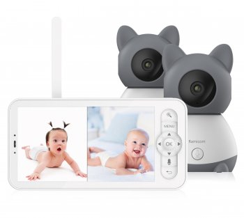Приятные особенности: Цифровая видеоняня Ramicom VRC300X2 с большим экраном, диагональ которого составляет 12,7 см (пять дюймов) и поворотной камерой, управлять которой можно удаленно. В видеоняне собраны все важные функции, включая датчик движения и возможность подключения к смартфону или планшету для мониторинга из любой точки мира. Видеоняня непрерывно контролирует вашего малыша днём и ночью в режиме 24/7. Может работать в режиме экономии энергии и включаться при обнаружении звука (VOX) или движения вокруг камеры. При этих же событиях поступает пуш-уведомление на смартфоне, если вы подключили видеоняню к домашней сети Wi-Fi. С помощью функции обратной связи вы можете попытаться успокоить малыша на расстоянии, если он расплачется.