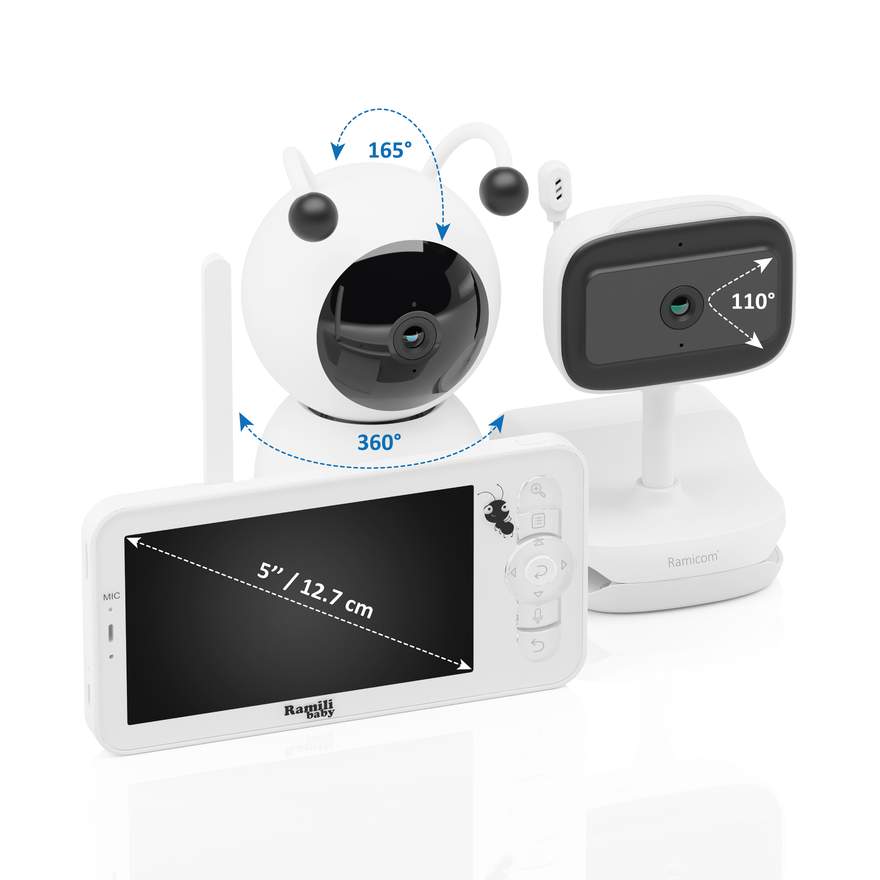 Приятные особенности:Одна камера с поворотным механизмом. Вторая камера с креплением-прищепкой на гибкой ножке и встроенным аккумулятором. Цифровая видеоняня от известного производителя детских товаров высокого качества с обнаружением движения и датчиком звука, которые оповещают родителей, если малыш проснется. Видеоняня отличается надёжной связью, хорошим видеоизображением и звуком. В каждую камеру встроен многоцветный ночничок, который наполняет детскую комнату мягким LED-светом, помогая малышу спокойно заснуть. Предусмотрены термометр, гигрометр для измерения влажности и возможность записывать видео на карту памяти.Эта модель оснащена всеми необходимыми функциями, а дальность между блоками при оптимальных условиях беспроводной связи может достигать 300 метров. Для мониторинга на более удаленном расстоянии обе камеры видеоняни можно подключить к домашней сети Wi-Fi, а затем наблюдать или общаться с малышом через удобное приложение на вашем смартфоне или планшете из любой точки мира через интернет.