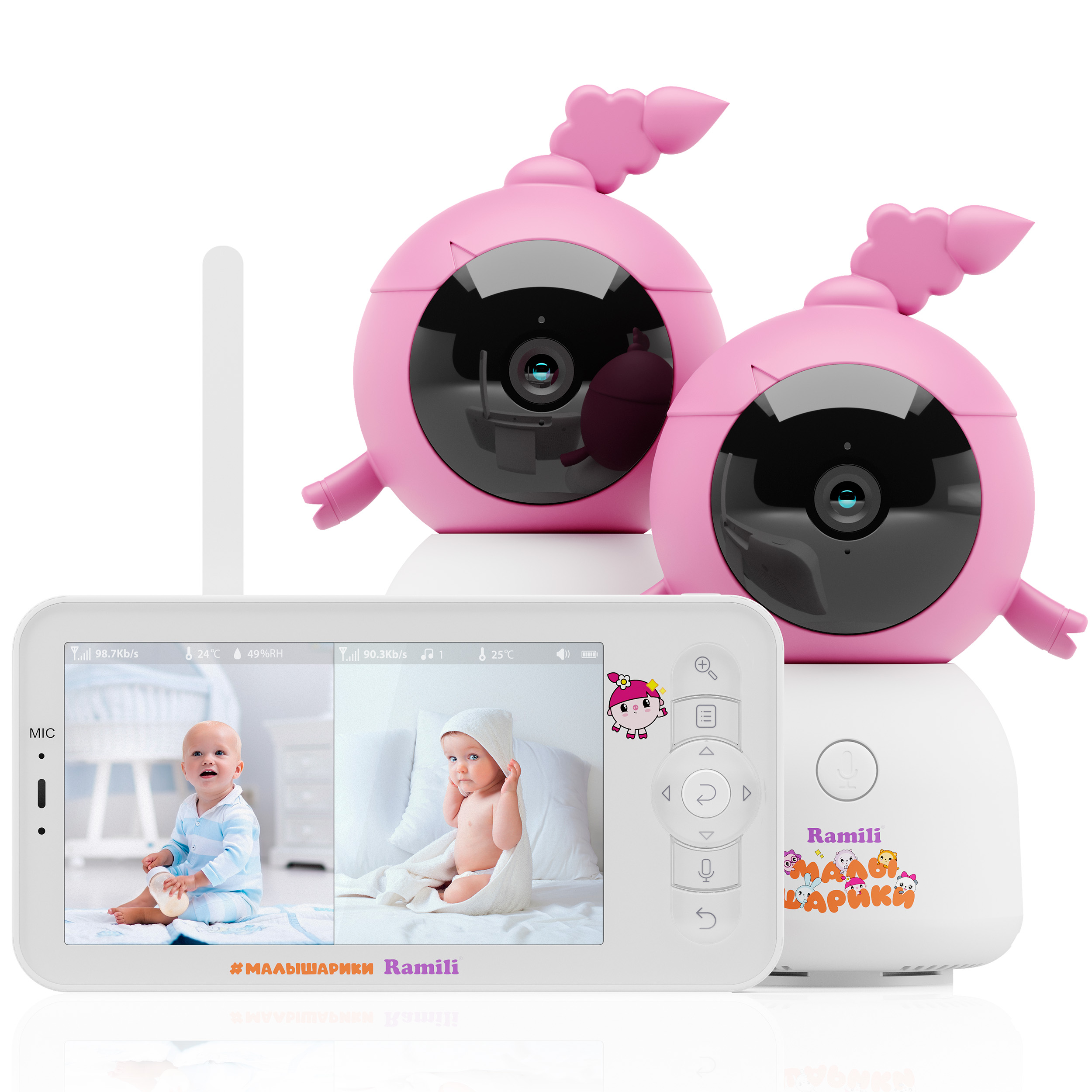 Приятные особенности: Видеоняня Ramili Baby RV100X2NUSHA Нюша, Малышарики, с креплениями - дизайн этой видеоняни выполнен по мотивам серии популярных мультфильмов для самых маленьких зрителей – Малышарики. Уникальный и забавный дизайн камеры порадует малыша и отлично впишется в интерьер любой детской комнаты.