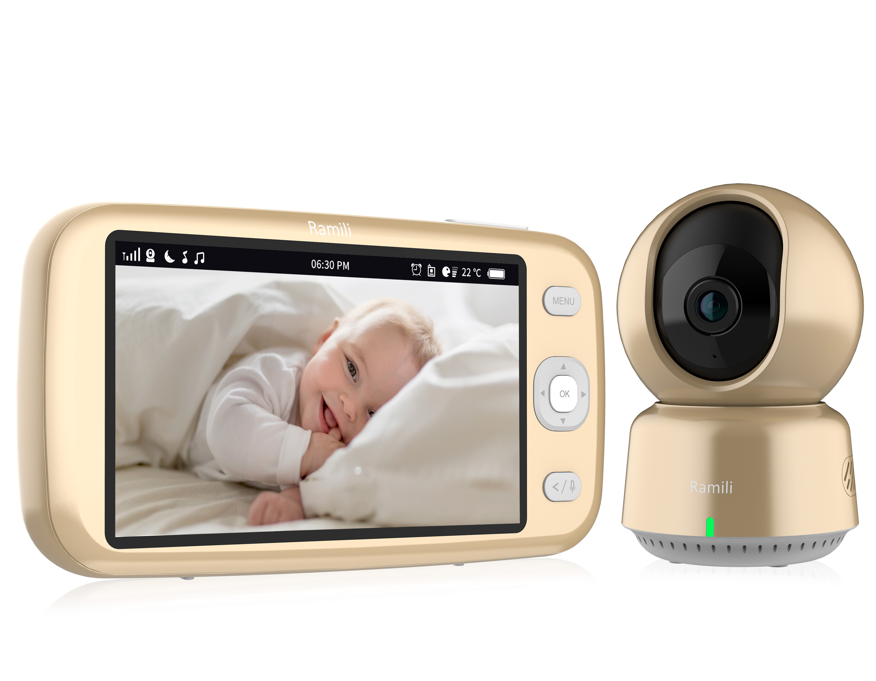 Приятные особенности:Видеоняня Ramili Baby RV1600 с доступом через интернет – это передовое устройство для присмотра за ребенком, которое обеспечивает спокойствие и комфорт для родителей. Включает в себя камеру и монитор, которые позволяют наблюдать за малышом на расстоянии до 400 метров с родительского блока при оптимальных условиях для связи и на неограниченном расстоянии с экрана смартфона или планшета через удобное приложение из любой точки мира, обеспечивая спокойствие для родителей и безопасность для ребенка.Камера оснащена высококачественным объективом, обеспечивающим четкое и яркое изображение. Это позволяет отлично видеть и слышать происходящее в комнате, где находится кроха. Кроме того, камера может поворачиваться на 360 градусов, что дает возможность контролировать все пространство вокруг малыша. Управлять вращением камеры Ramili Baby RV1600 на расстоянии можно с помощью кнопок на родительском блоке. С его помощью можно изменять настройки камеры, включать колыбельные мелодии, приближать или отдалять изображение.В родительский блок видеоняни встроен аккумулятор, который в зависимости от интенсивности использования может обеспечить до 6 часов работы устройства в активном режиме без подключения к сети. Камера может работать от розетки или от вашего портативного аккумулятора, что позволяет использовать устройство даже в тех случаях, когда нет возможности подключиться к электросети.Монитор видеоняни оснащен большим дисплеем с диагональю 12,7 см (5 дюймов), который обеспечивает отличное качество изображения. Он также имеет встроенный динамик и микрофон, что позволяет родителям общаться с ребенком на расстоянии. Видеоняня Ramili Baby RV1600 имеет функцию ночного видения, которая позволяет видеть малыша даже в условиях низкой освещенности. Эта функция активируется автоматически при недостаточном освещении, и камера переключается в режим черно-белого изображения.