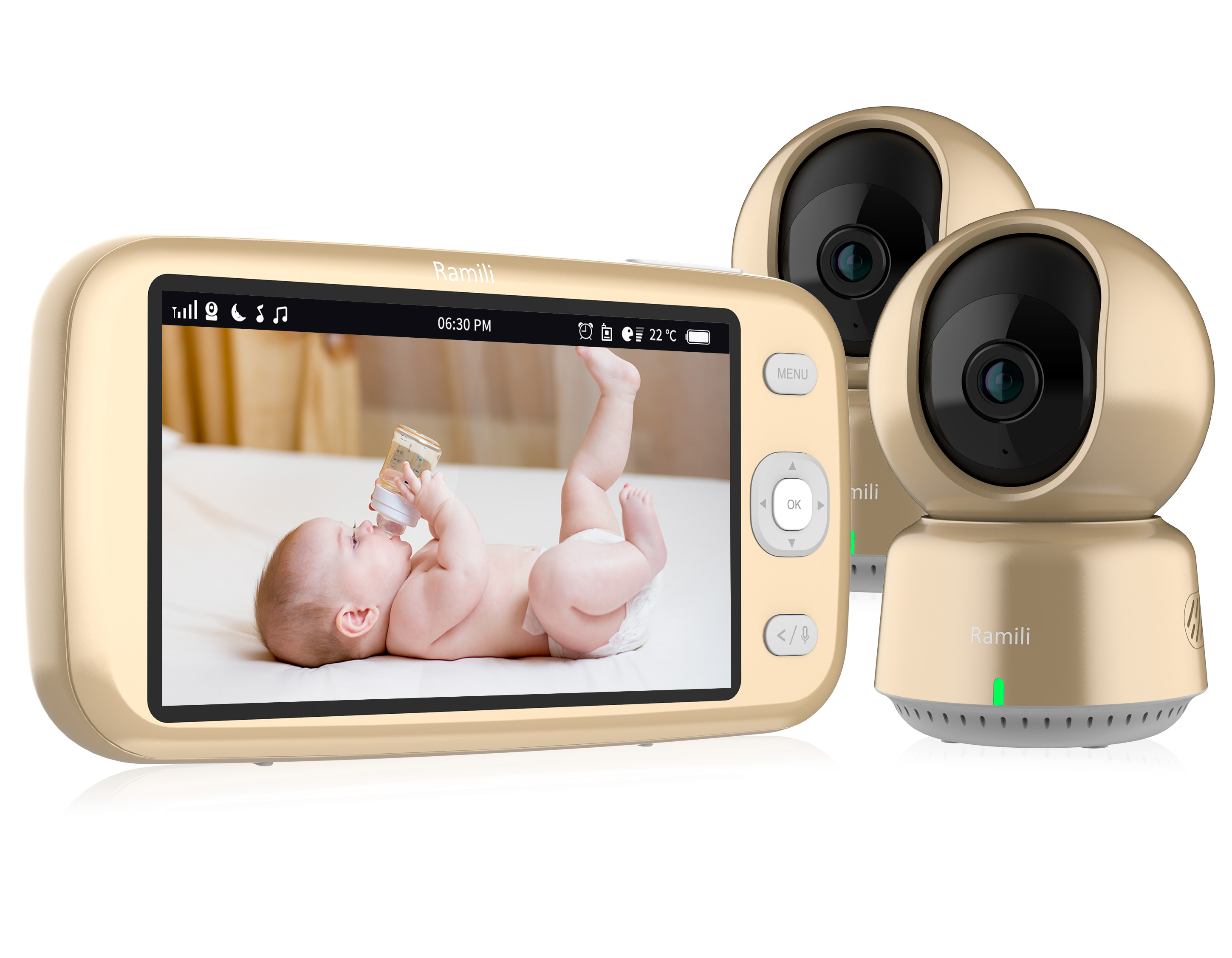 Приятные особенности:Видеоняня Ramili Baby RV1600X2 с доступом через интернет – это передовое устройство для присмотра за ребенком, которое обеспечивает спокойствие и комфорт для родителей. Включает в себя камеру и монитор, которые позволяют наблюдать за малышом на расстоянии до 400 метров с родительского блока при оптимальных условиях для связи и на неограниченном расстоянии с экрана смартфона или планшета через удобное приложение из любой точки мира, обеспечивая спокойствие для родителей и безопасность для ребенка.Камера оснащена высококачественным объективом, обеспечивающим четкое и яркое изображение. Это позволяет отлично видеть и слышать происходящее в комнате, где находится кроха. Кроме того, камера может поворачиваться на 360 градусов, что дает возможность контролировать все пространство вокруг малыша. Управлять вращением камеры Ramili Baby RV1600X2 на расстоянии можно с помощью кнопок на родительском блоке. С его помощью можно изменять настройки камеры, включать колыбельные мелодии, приближать или отдалять изображение.В родительский блок видеоняни встроен аккумулятор, который в зависимости от интенсивности использования может обеспечить до 6 часов работы устройства в активном режиме без подключения к сети. Камера может работать от розетки или от вашего портативного аккумулятора, что позволяет использовать устройство даже в тех случаях, когда нет возможности подключиться к электросети.Монитор видеоняни оснащен большим дисплеем с диагональю 12,7 см (5 дюймов), который обеспечивает отличное качество изображения. Он также имеет встроенный динамик и микрофон, что позволяет родителям общаться с ребенком на расстоянии. Видеоняня Ramili Baby RV1600X2 имеет функцию ночного видения, которая позволяет видеть малыша даже в условиях низкой освещенности. Эта функция активируется автоматически при недостаточном освещении, и камера переключается в режим черно-белого изображения.