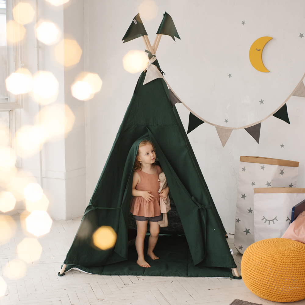 - Тайская гирлянда для украшения и подсветки детского вигвама. Один из самых популярных аксессуаров. Тайские фонарики не нагреваются, не вызывают аллергии (так как сделаны вручную их хлопковой нити) и легко выпрямляются палочкой от суши, если вдруг ребенок их помял. Тайская гирлянда создаст вечерний уют и украсит собой интерьер детской комнаты. Выбрать можно тут.