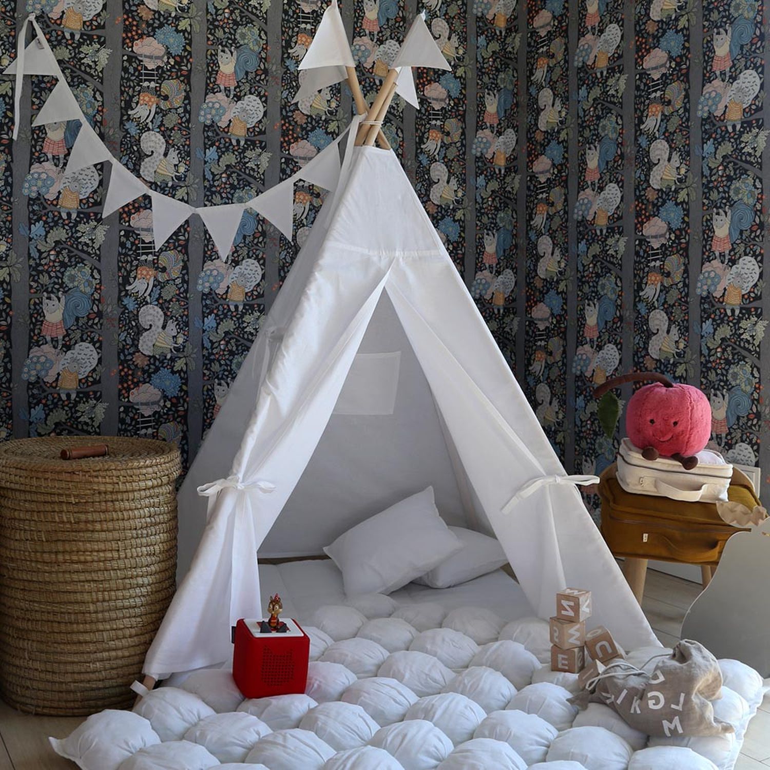 • Тайская гирлянда для украшения и подсветки детского вигвама. Один из самых популярных аксессуаров. Тайские фонарики не нагреваются, не вызывают аллергии (так как сделаны вручную их хлопковой нити) и легко выпрямляются палочкой от суши, если вдруг ребенок их помял. Тайская гирлянда создаст вечерний уют и украсит собой интерьер детской комнаты. Выбрать можно тут.