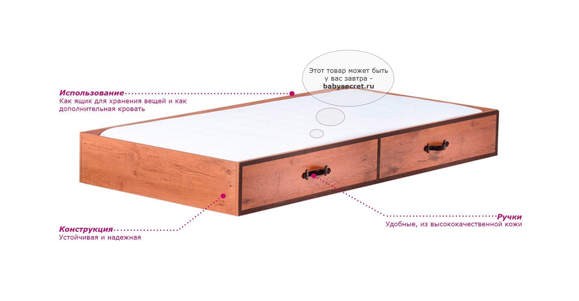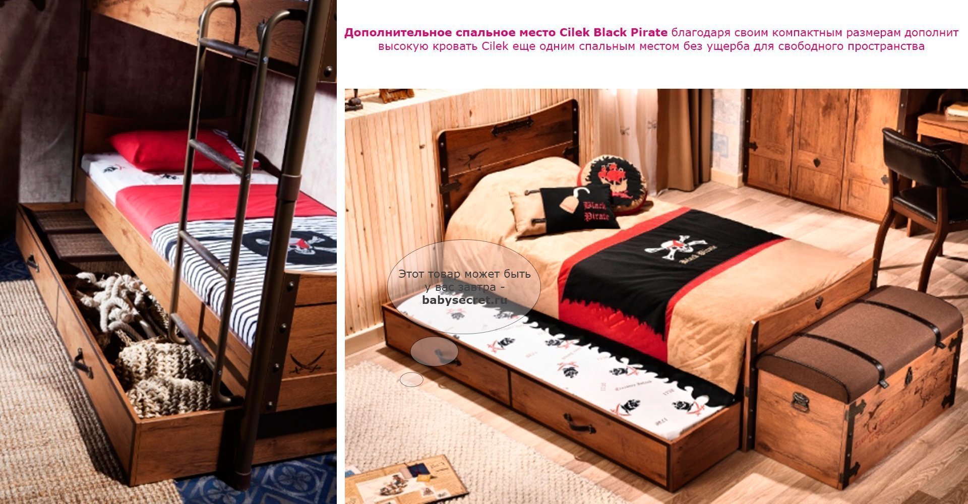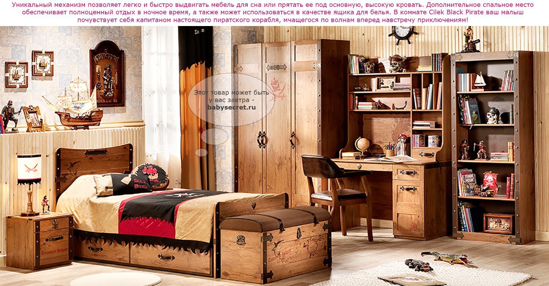 Производитель: Cilek (Турция) Материалы: Основные характеристики: Приятные особенности детской выдвижной кровати Cilek Black Pirate: еслиу вас уже есть высокая кровать, но нужно создать еще одно спальное место без ущерба свободному пространству – рассмотрите как вариант детские кровати Cilek Black Pirate. В процессе разработки Cilek Black Pirate конструкторы позаботились о том, чтобы кровать выдвигалась максимально легко и была безопасной и удобной для ребенка. Общие размеры:внешние (шхгхв) 95x186x24 см внутренние (для матраса (шхд) 90x180 см Вес: 38 кг внешние (шхгхв) 95х193х24 см внутренние (для матраса (шхд) 90x190 см Вес: 38 кгГабариты в упаковке (ШxДxВ):Коробка выдвижная кровать 2 упаковки: 0.091 м3 , 38 кгГарантия: 12 мес.